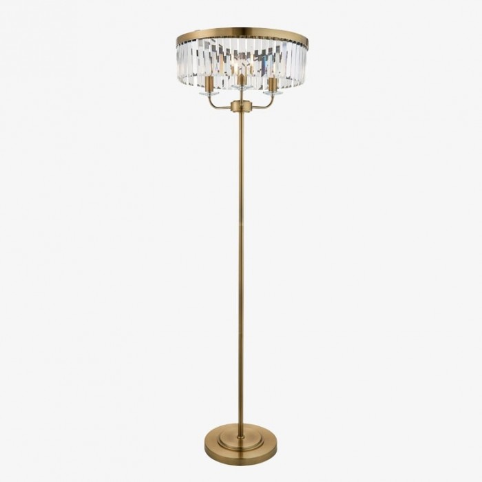 Lampadaire rond Beveline à 3 lumières - Abat-jour en verre taillé à facettes, finition métal classique, idéal pour le salon