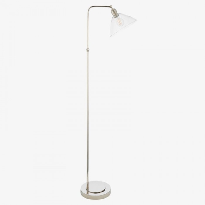Lampadaire Art Déco Clarione avec abat-jour en verre transparent et base en métal HL2096