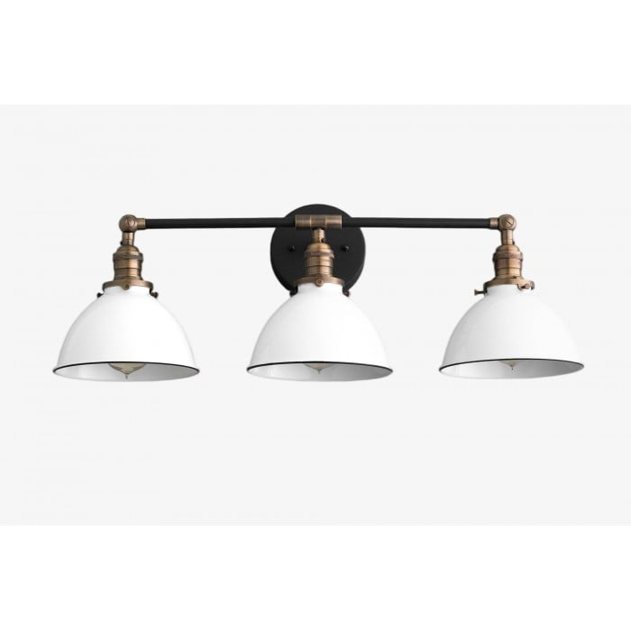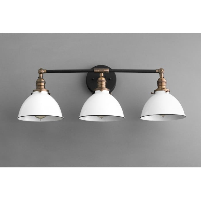 Ce luminaire de coiffeuse rustique en métal allie la chaleur d'une maison de campagne à une touche industrielle. Disponible en laiton antique, noir et noir/laiton antique , il est un choix élégant pour votre salle de bain ou votre chalet. Son design robuste met en valeur les styles vintage et industriel, créant une atmosphère à la fois chaleureuse et moderne.