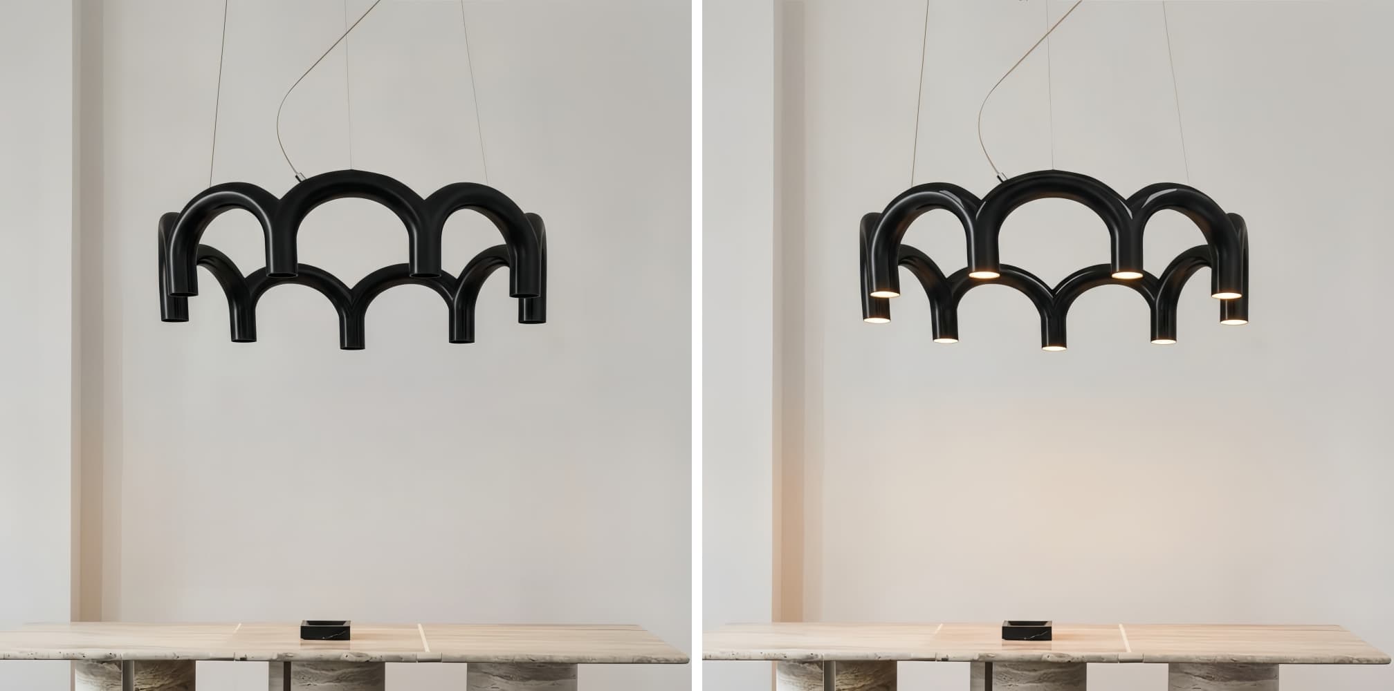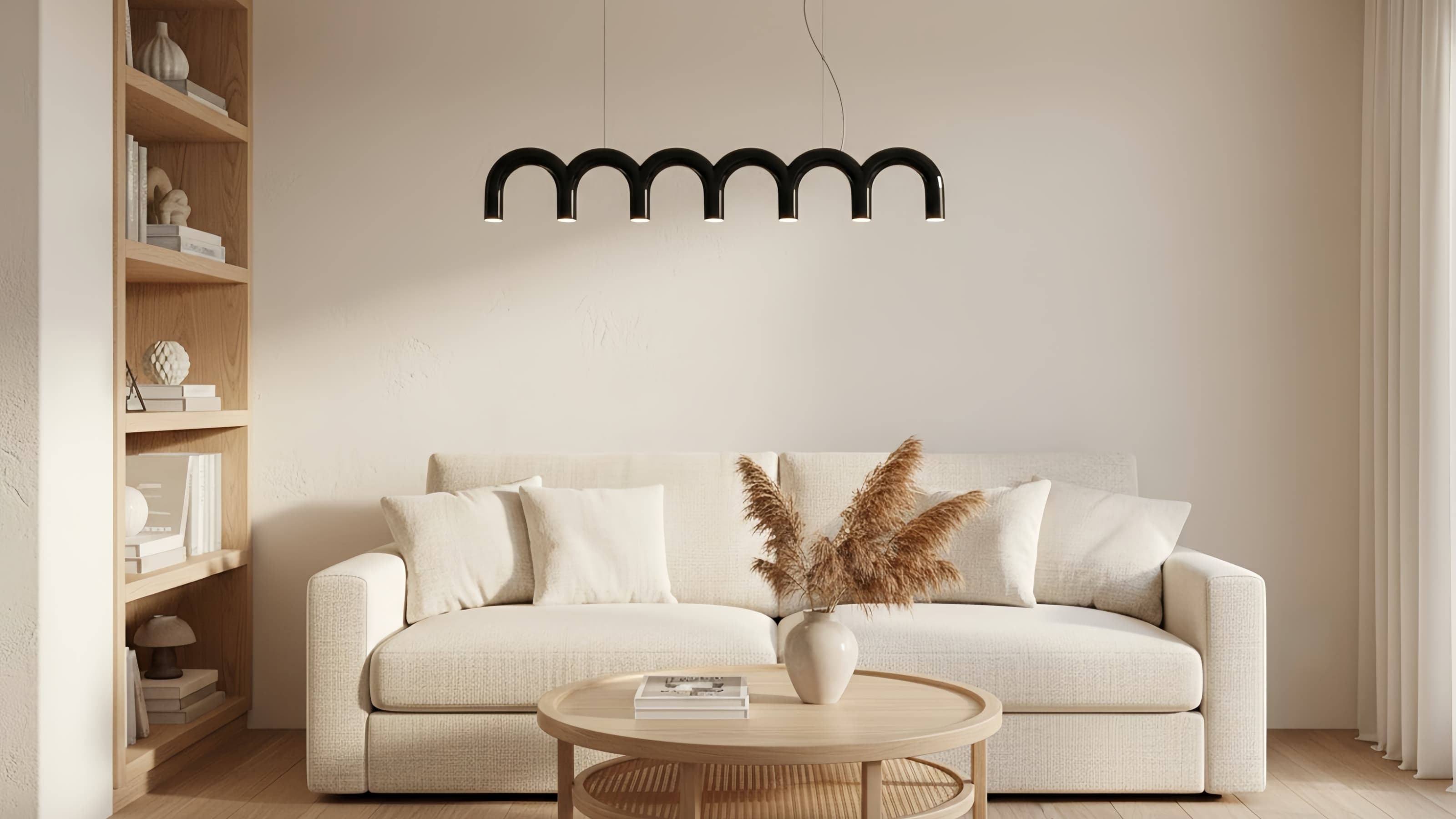 Ce lustre moderne arbore une silhouette sculpturale incurvée en forme de M, réinterprétant les arches architecturales avec une touche contemporaine épurée. Sa forme fluide apporte un impact visuel et une élégance équilibrée aux salons, salles à manger et intérieurs modernes.