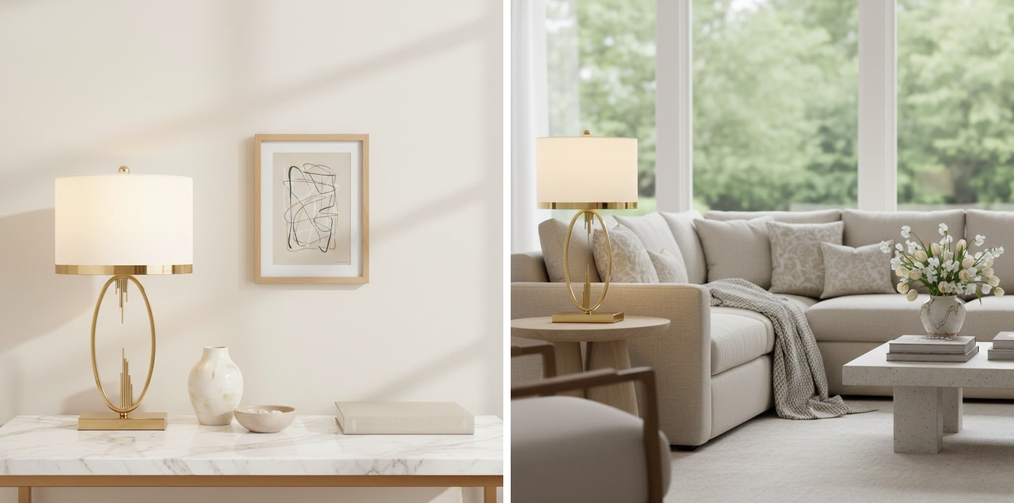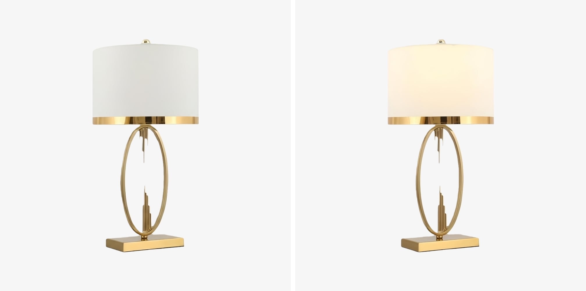 Cette lampe de table de style transitionnel associe un élégant corps en cuivre à un abat-jour en lin blanc, combinant métal poli et tissu doux pour un accent raffiné, fonctionnel et élégant dans les salons, les chambres ou les bureaux.