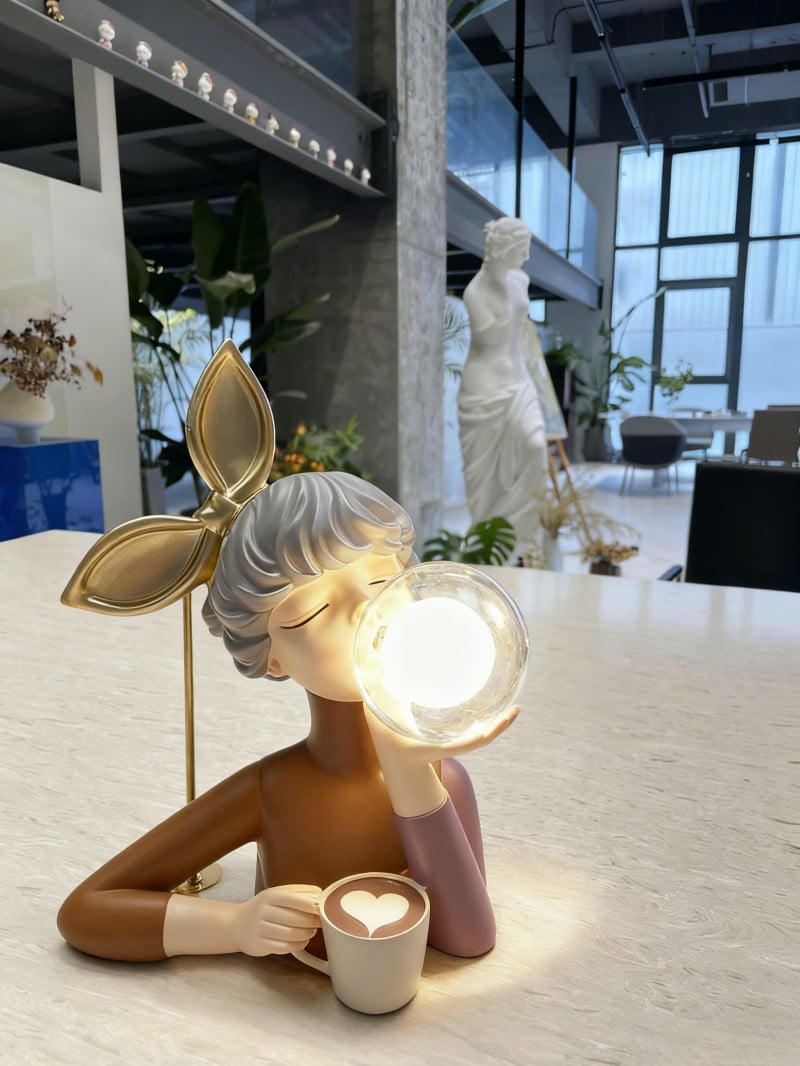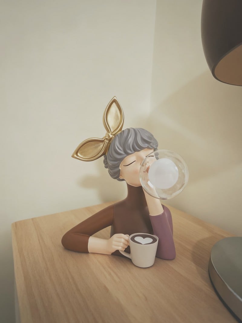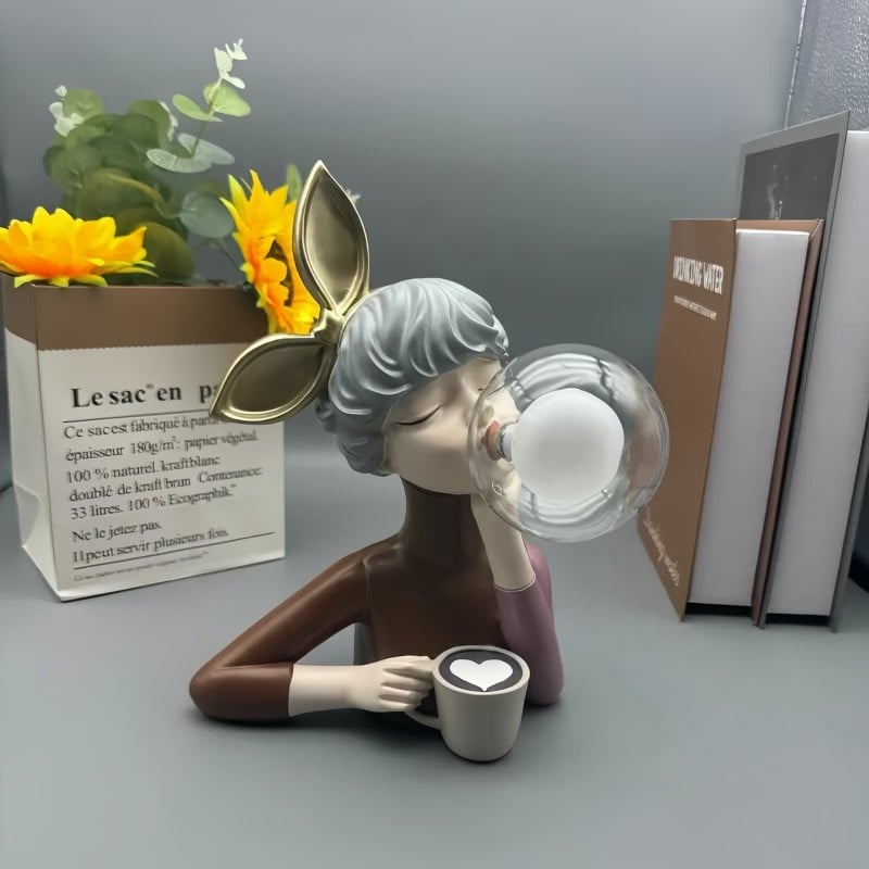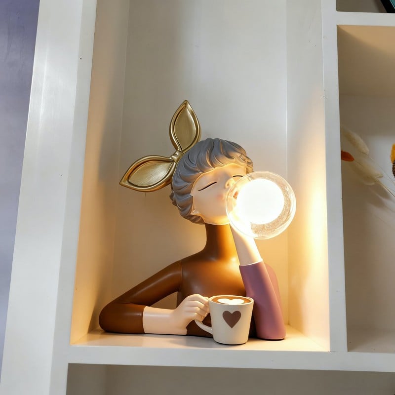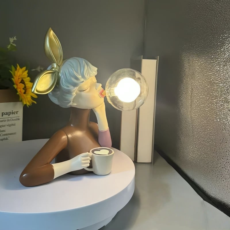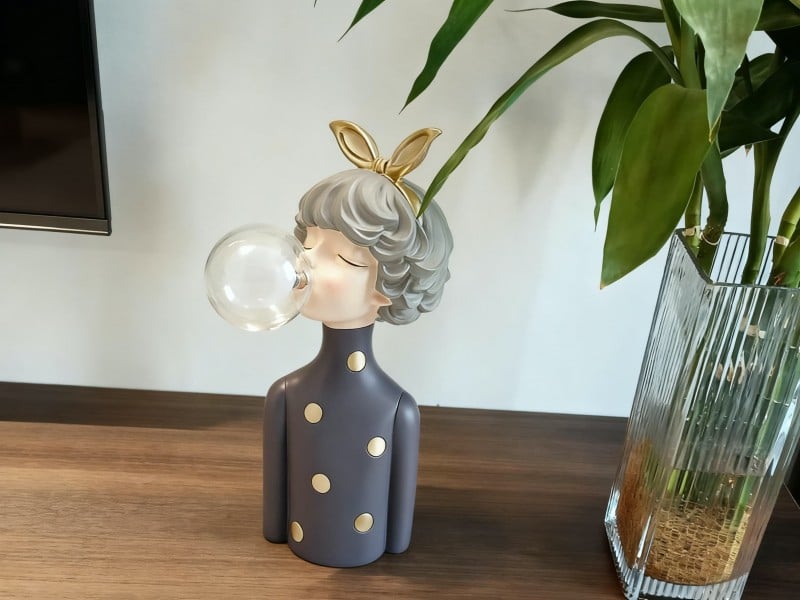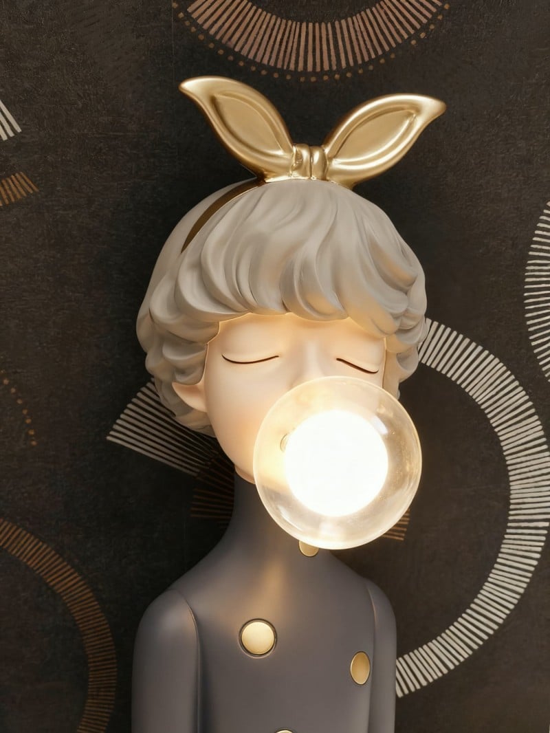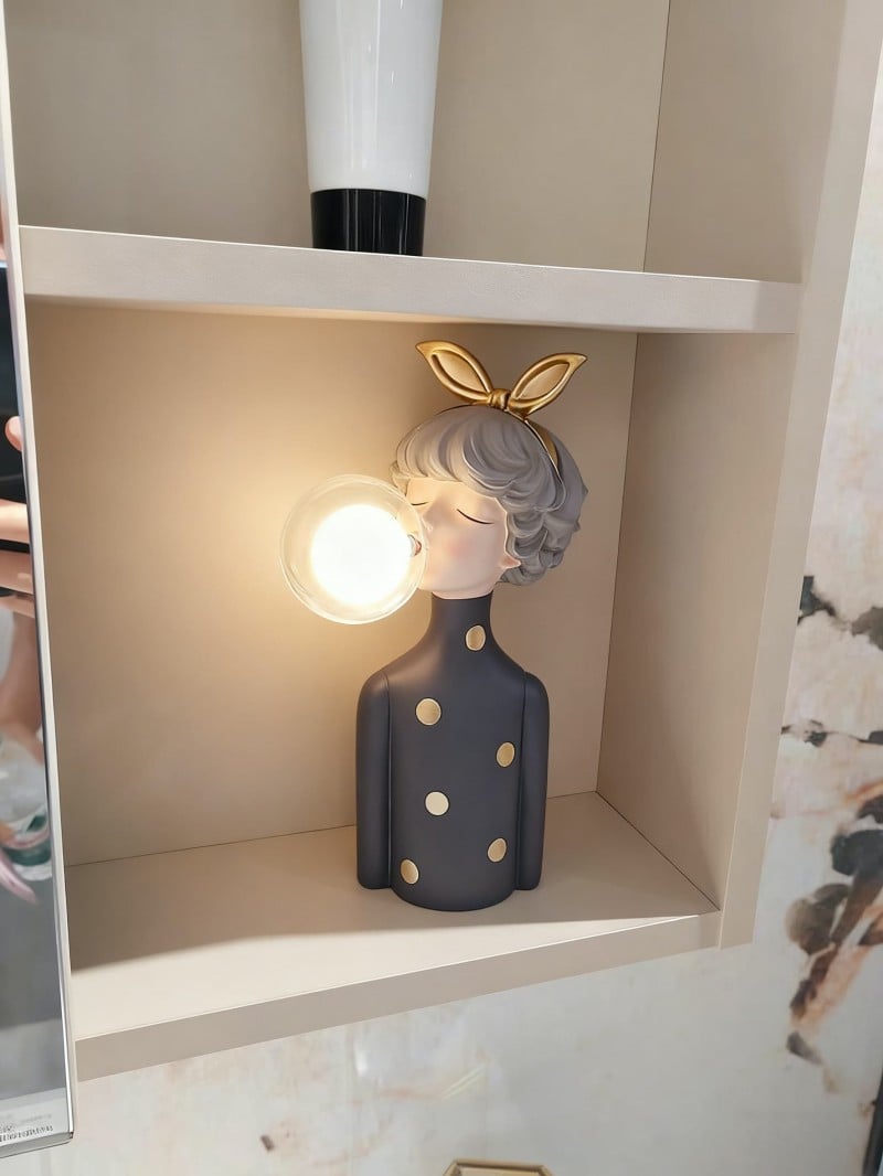 Cette lampe de table kawaii a une apparence unique, avec l'image d'une petite fille soufflant des bulles. La lampe de table de poupée peut servir de décoration, ajoutant une touche agréable à la chambre et injectant une sensation de fraîcheur. Tout en apportant un éclairage, il crée également une ambiance chaleureuse dans la pièce.