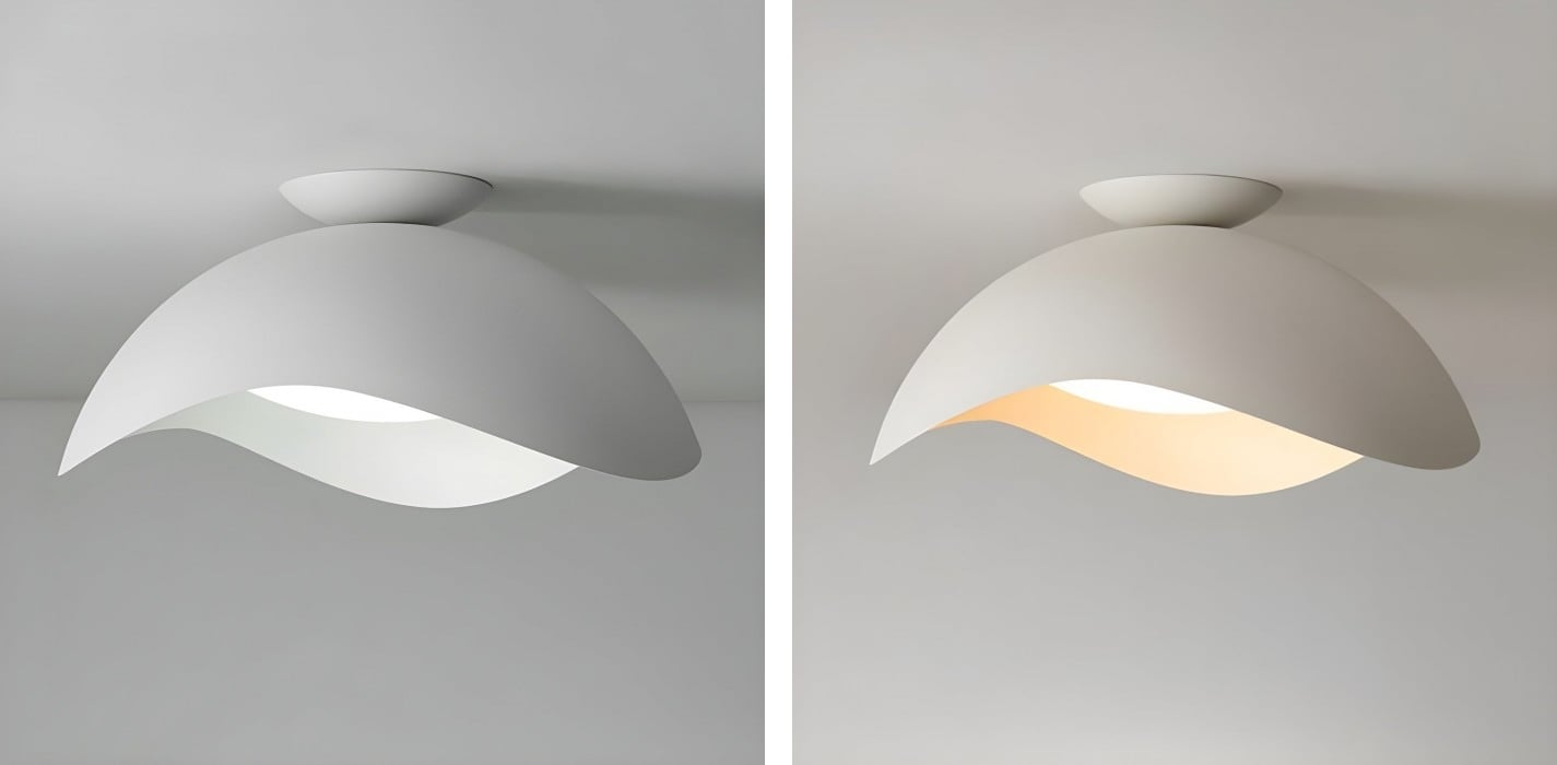 Le plafonnier Wave présente un design fluide inspiré des vagues, avec un abat-jour aux courbes gracieuses. Sa forme sculpturale apporte une élégance sereine et une touche contemporaine aux chambres, salons ou entrées, créant un point focal stylé tout en sublimant l'atmosphère de la pièce.