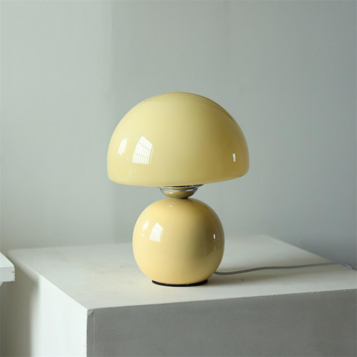 La lampe de table Spika, disponible en exclusivité, allie un design ludique à une élégance moderne. Avec sa silhouette fantaisiste inspirée d'un champignon, cette lampe se distingue par son pied brillant à double sphère et son abat-jour lisse en forme de dôme. Ses coloris pastel éclatants en font la pièce maîtresse idéale pour apporter charme et chaleur à n'importe quel espace.
