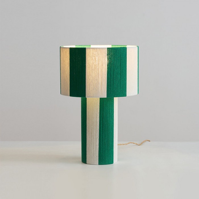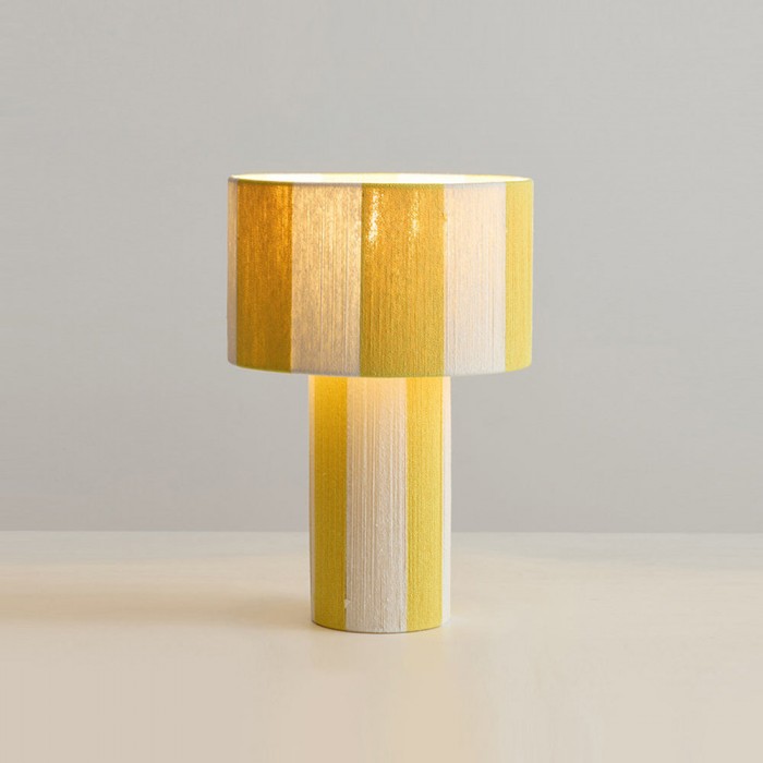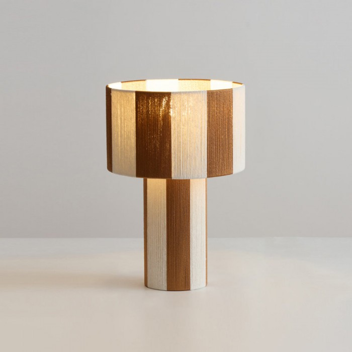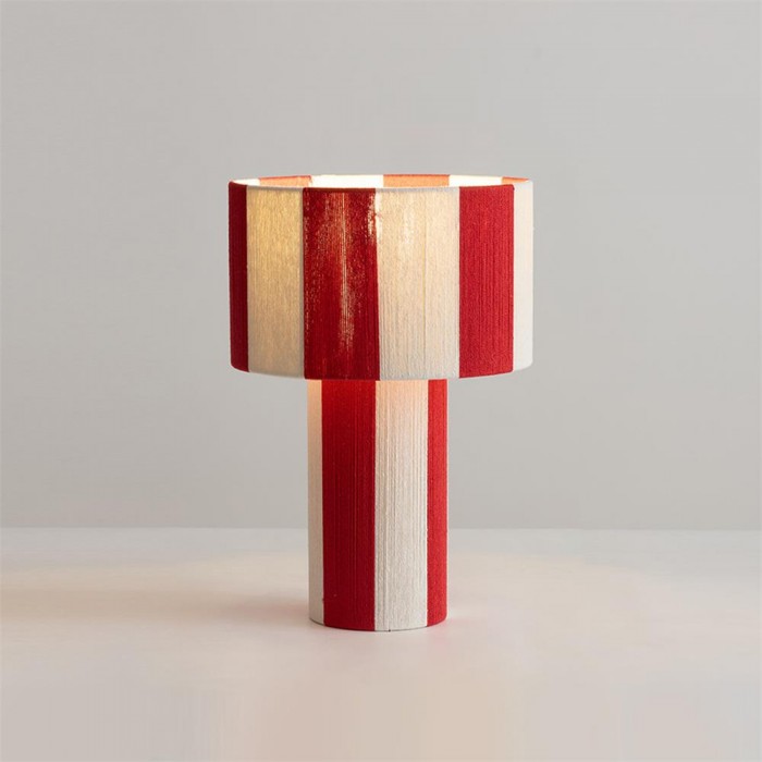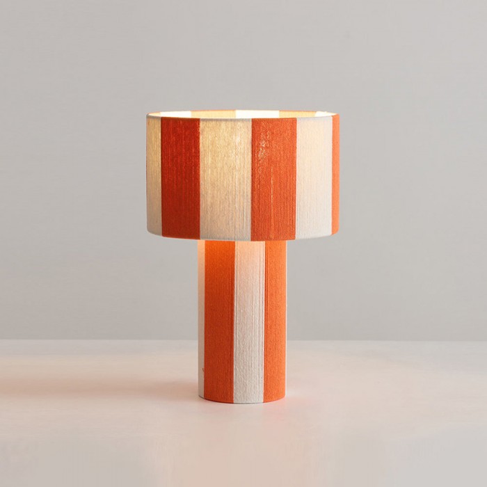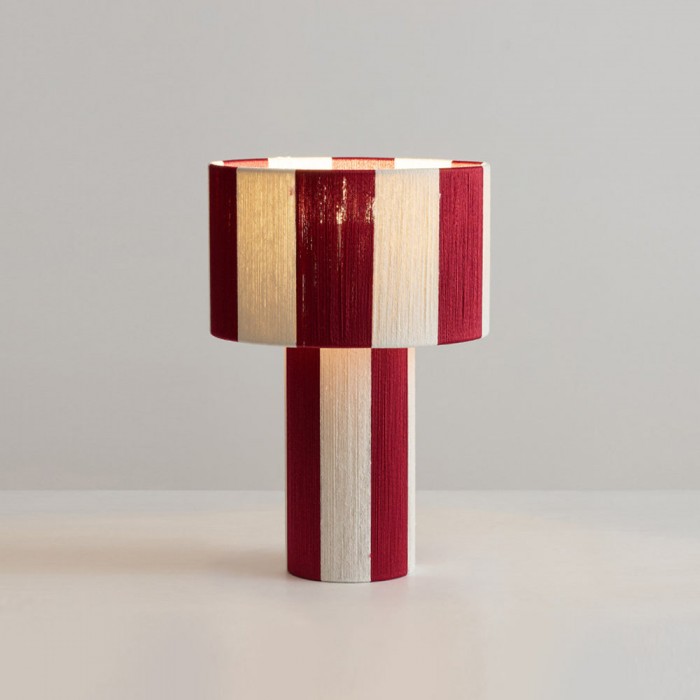 La lampe de table Strivelle affirme un style audacieux grâce à sa silhouette cylindrique épurée et sa finition rayée rouge et ivoire saisissante, alliant dynamisme et simplicité sculpturale. La continuité parfaite entre le pied et l'abat-jour confère à son design une allure à la fois graphique et architecturale, transformant une lampe de table classique en un objet décoratif moderne. Le motif vertical vibrant apporte rythme, contraste et une touche de charme rétro, tandis que la lumière douce et diffuse diffuse une lumière chaleureuse et harmonieuse, sublimant ainsi sa forme expressive.