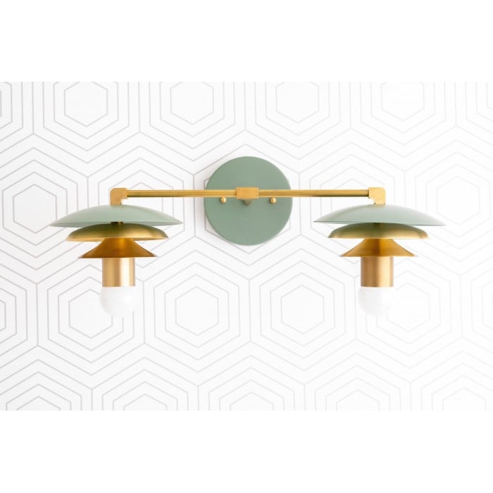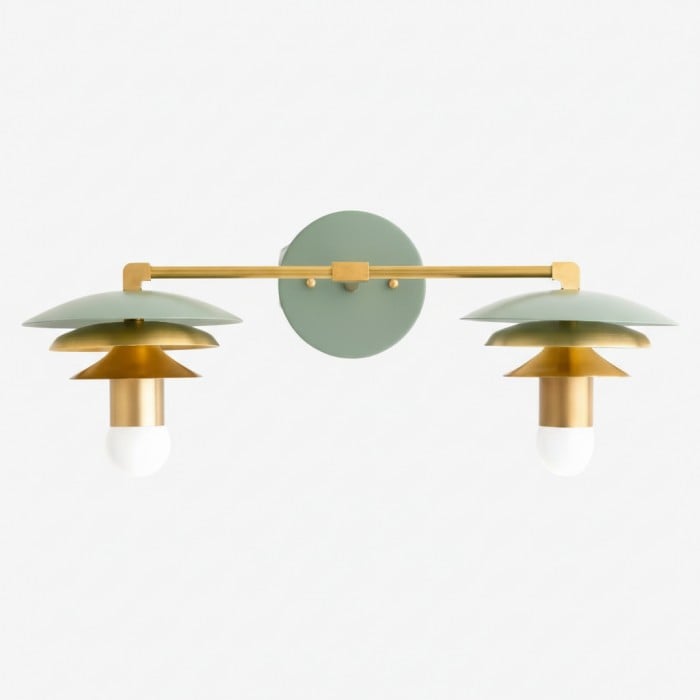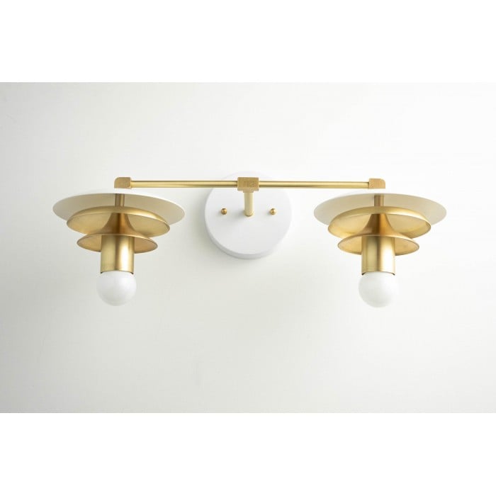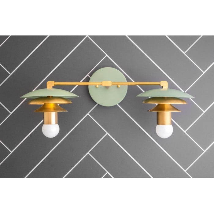 Apportez une touche chic à votre salle de bains avec ce luminaire de salle de bains en laiton. Ses touches de laiton s'harmonisent avec les abat-jour aux formes originales, créant ainsi un élément visuel saisissant. Au-delà de son aspect décoratif, il offre un éclairage pratique pour votre salle de bains, facilitant le maquillage et le rasage. Que votre salle de bains soit petite ou spacieuse, ce luminaire apporte une touche de luxe moderne sans surcharger l'espace.