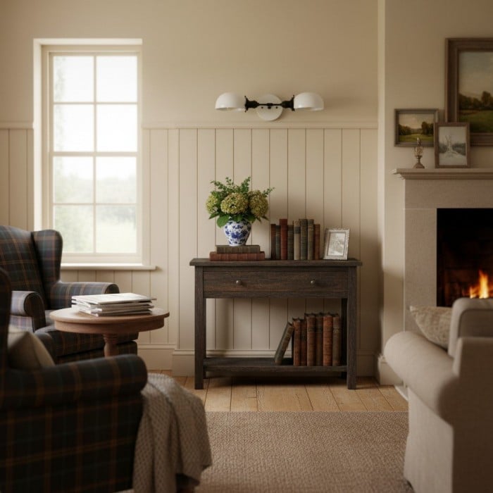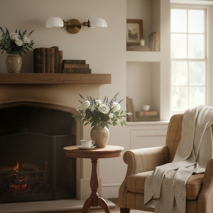 - Abat-jour en verre opale pour un éclairage doux et diffus.