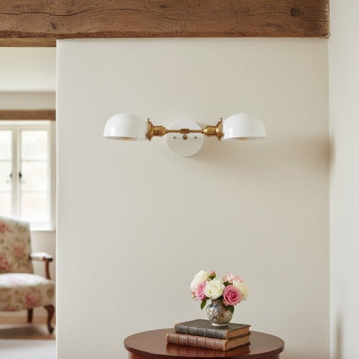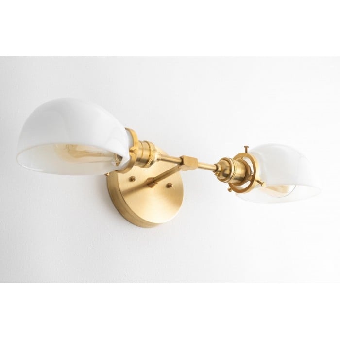 Alliez charme vintage et fonctionnalité moderne. Ce luminaire d'inspiration Art déco est doté d'une structure en laiton de qualité et d'abat-jour en verre opale qui diffusent la lumière uniformément. Idéal pour les salles de bains, les dressings ou tout espace nécessitant un éclairage d'appoint élégant.