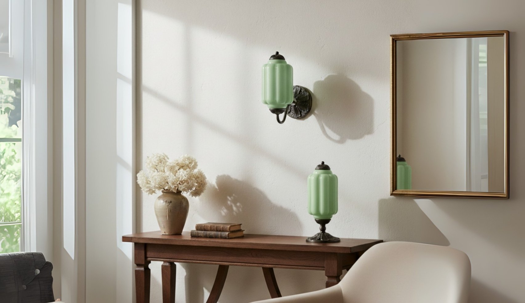 Vintage glazen lampenkappen met een elegant, tijdloos silhouet, die een warme, uitnodigende gloed verspreiden die elke ruimte verrijkt met verfijnde charme en blijvende schoonheid.