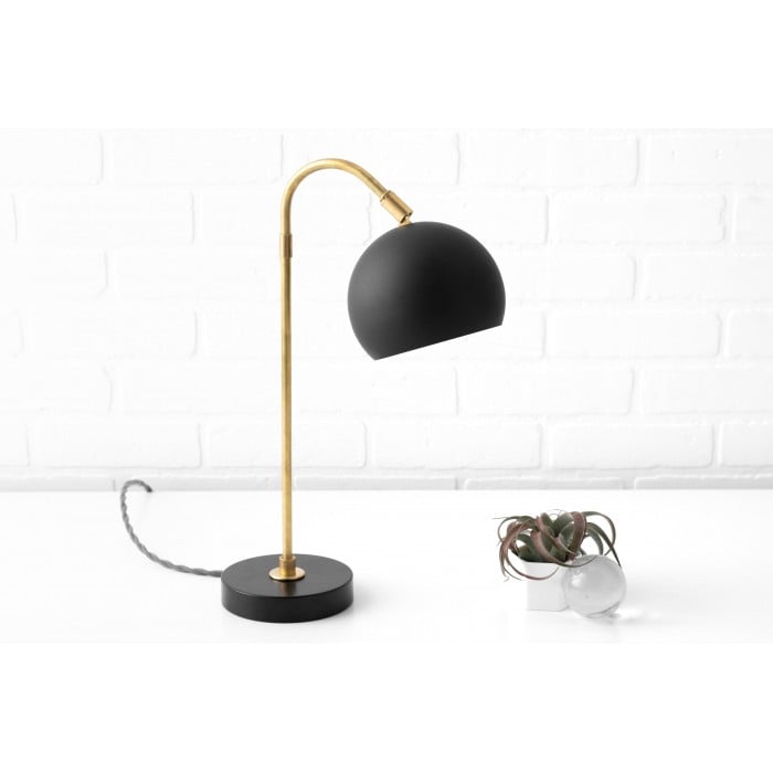 Realizzata con un tocco contemporaneo, questa lampada da tavolo è disponibile con finitura in ottone sigillato o verniciata a polvere nera. Alta poco più di 43 cm, fornisce un'illuminazione d'ambiente e funge da elemento decorativo d'accento. Perfetta per interni moderni che ricercano funzionalità e fascino senza tempo.