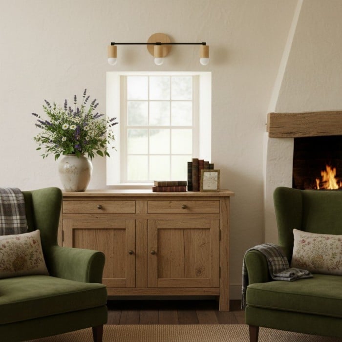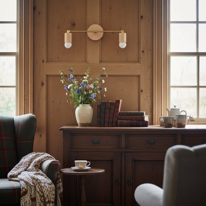 Mobilux Line Wood and Vanity Light - Apparecchio di illuminazione per bagno in stile bohémien HL1736