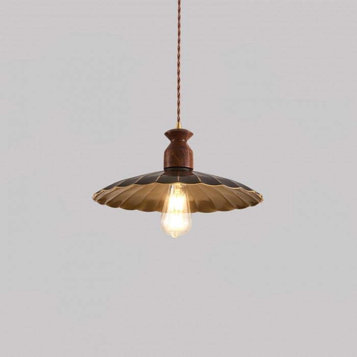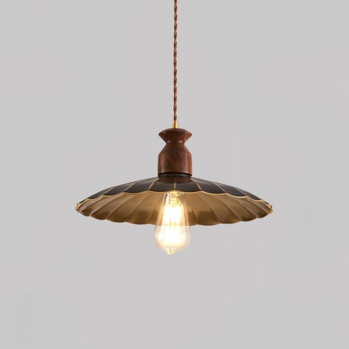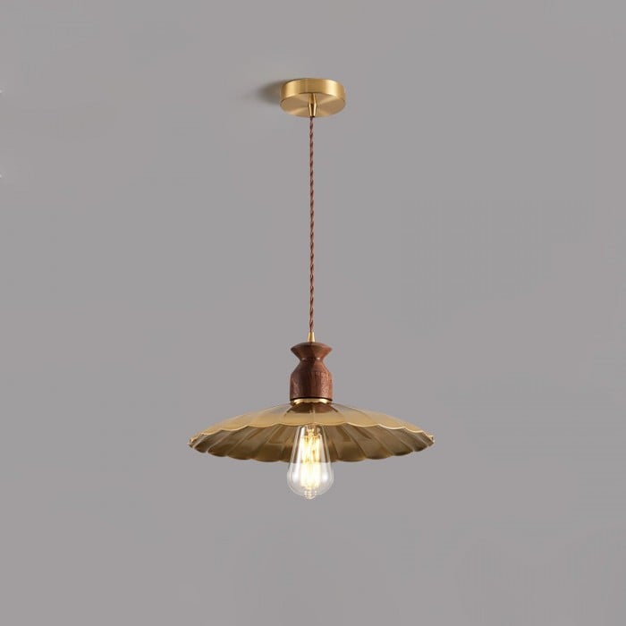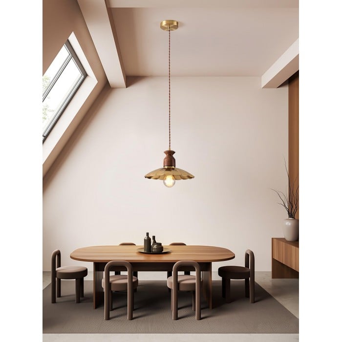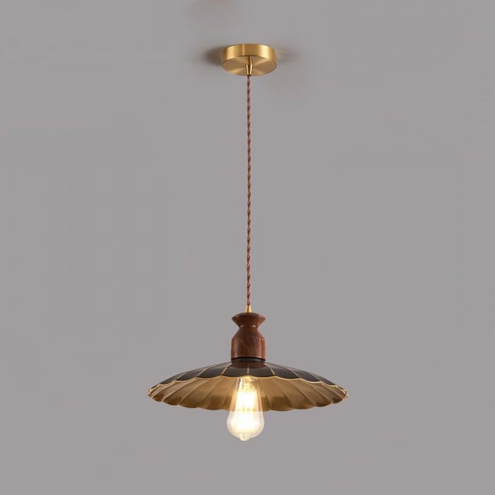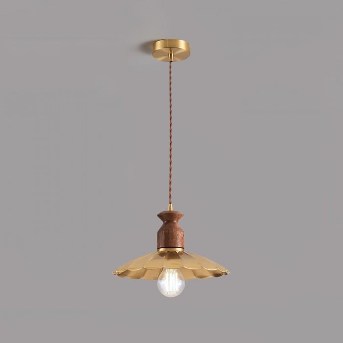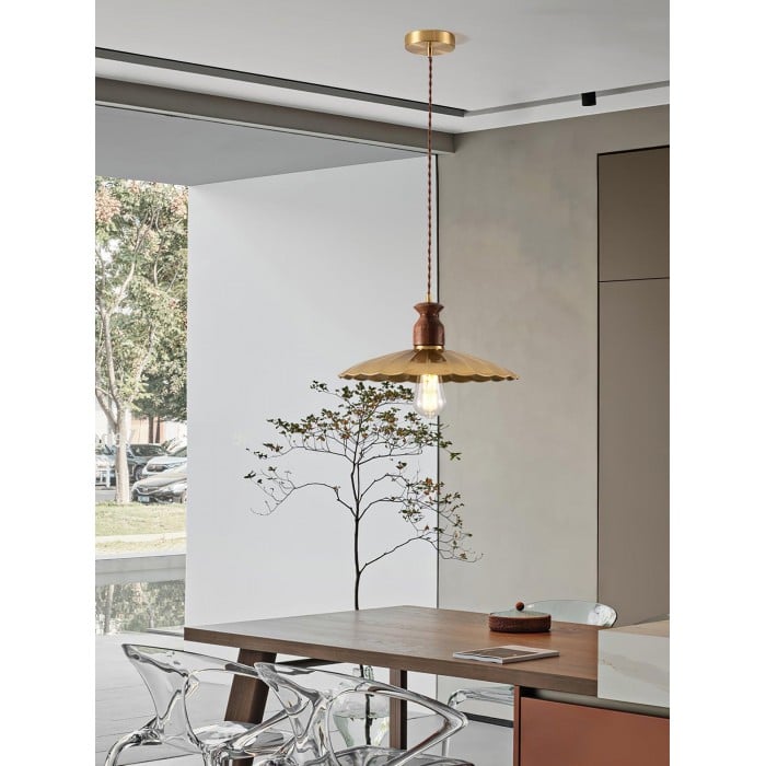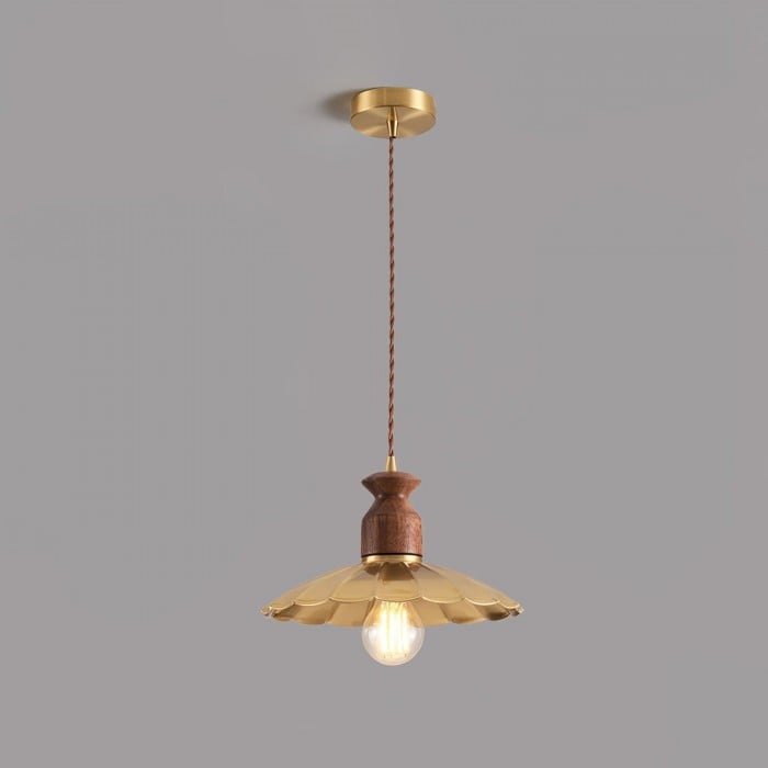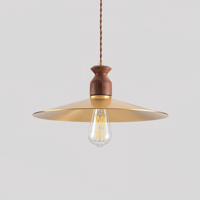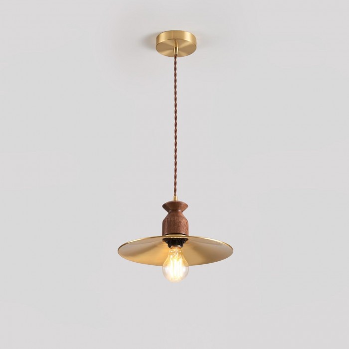 Scopri la perfetta combinazione di metallo industriale e caldo legno naturale con la nostra lampada a sospensione Brass Crest. Il paralume luminoso in metallo dorato, il classico design a tromba e la squisita parte superiore in legno emanano un fascino retrò senza tempo, mentre i toni intensi del rame e la superficie liscia aggiungono eleganza rustica. Appesa a una corda intrecciata, è una soluzione personalizzata per qualsiasi spazio, aggiungendo calore e stile.