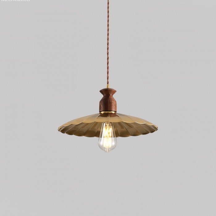 Lampada a sospensione rotonda in ottone con distintivo in metallo dorato HL389