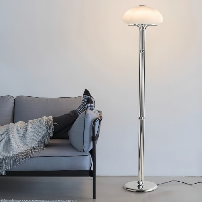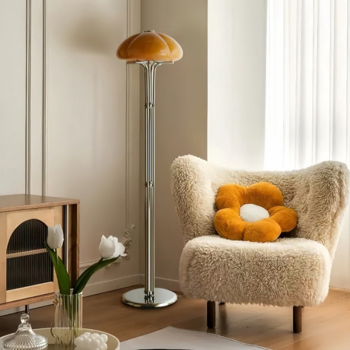 Esalta i tuoi interni con l'elegante e moderna lampada da terra Pumpkin Glass. Questa lampada presenta un design sofisticato con una base cromata lucida e uno splendido paralume in vetro disponibile sia in bianco che in ambra. Il design minimalista ma elegante la rende un'aggiunta perfetta a qualsiasi arredamento contemporaneo o classico.