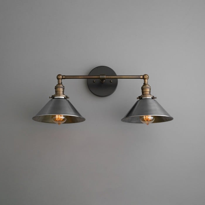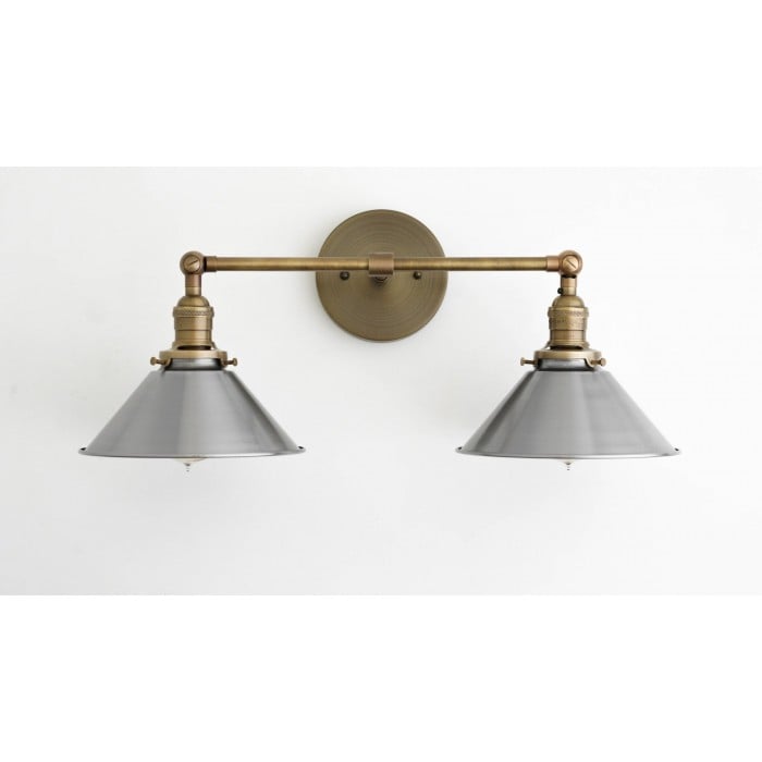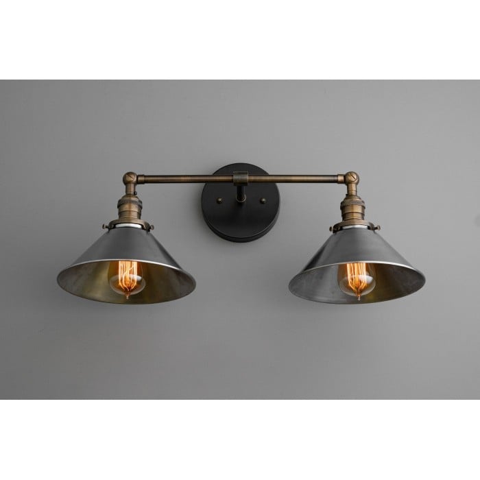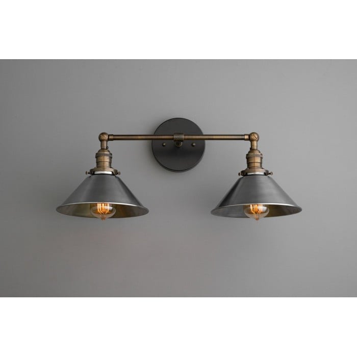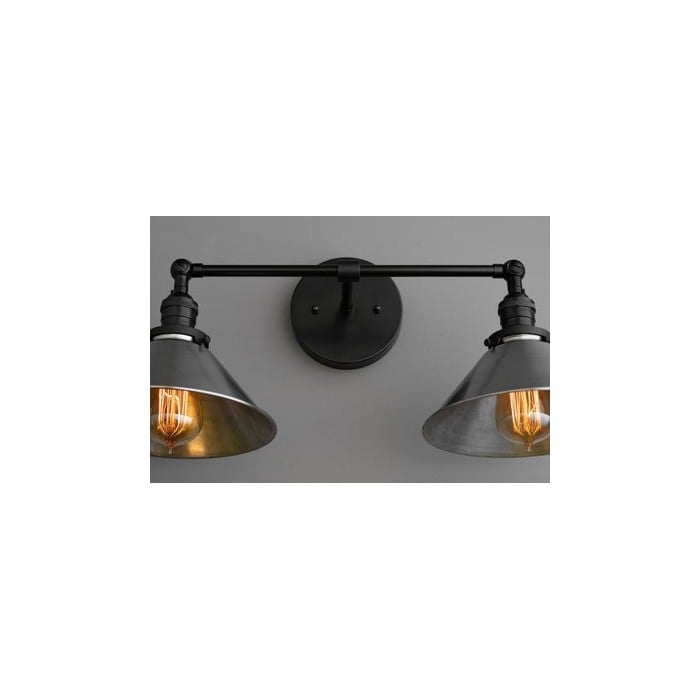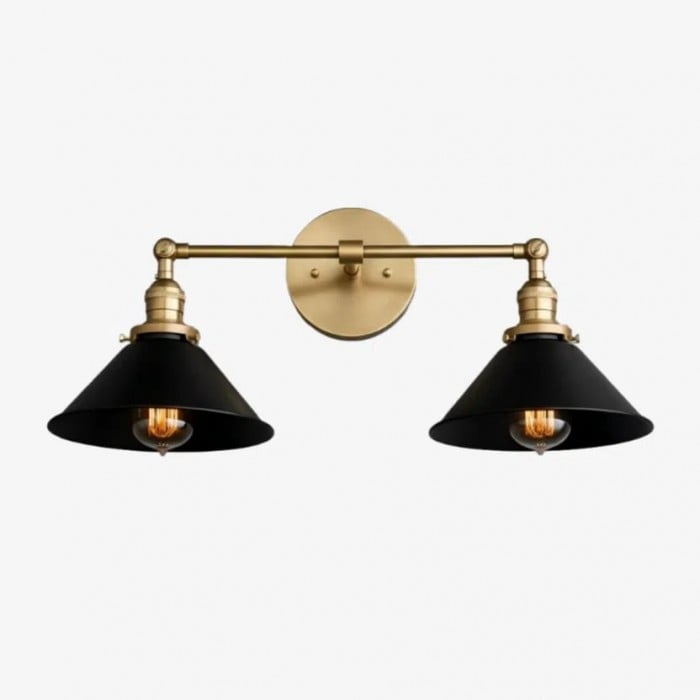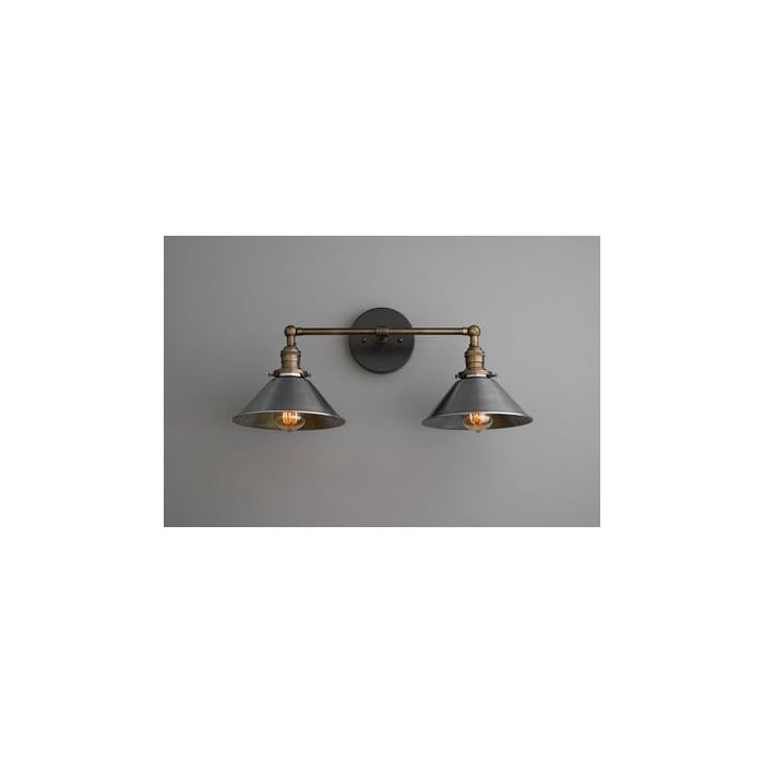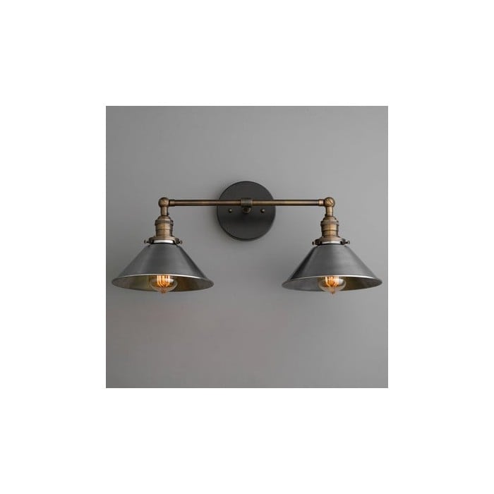 Applique da parete industriale in metallo Conique con doppi paralumi a cono - Finitura in metallo vintage HL1753