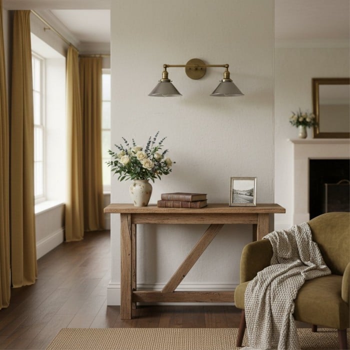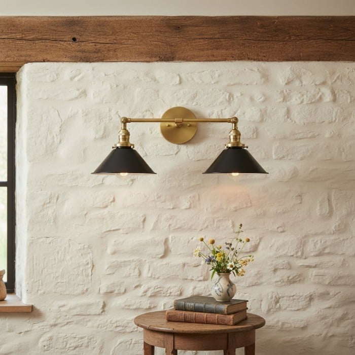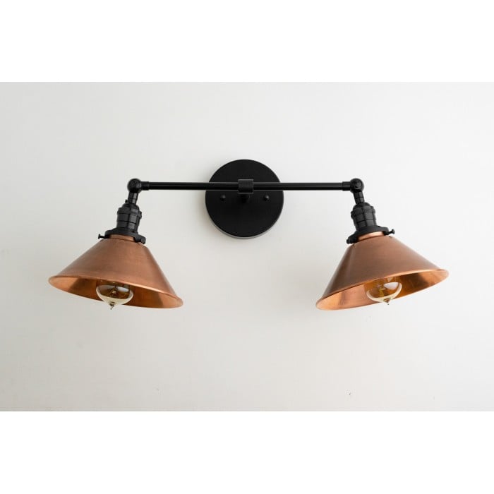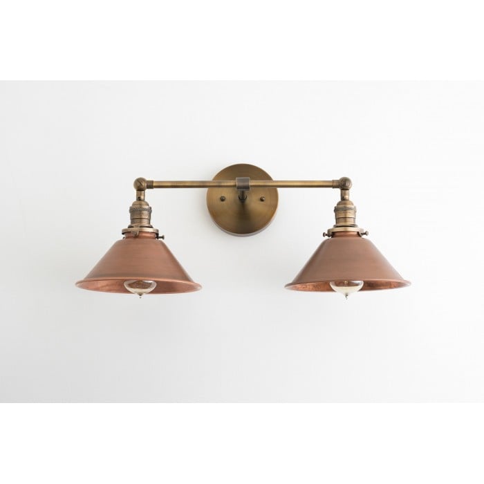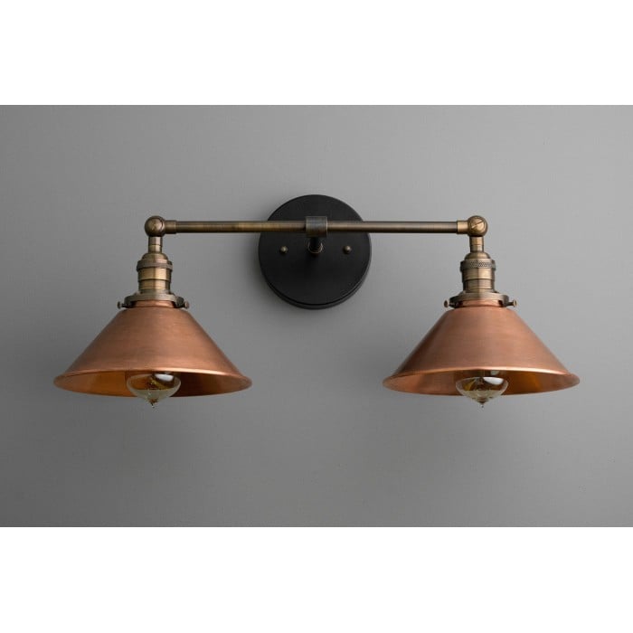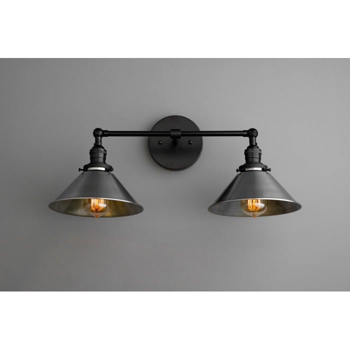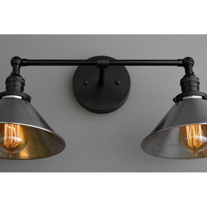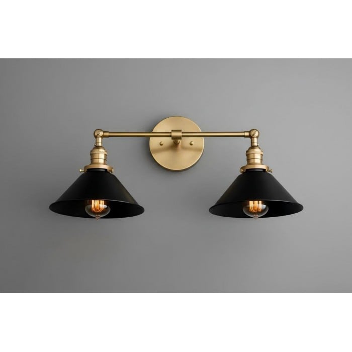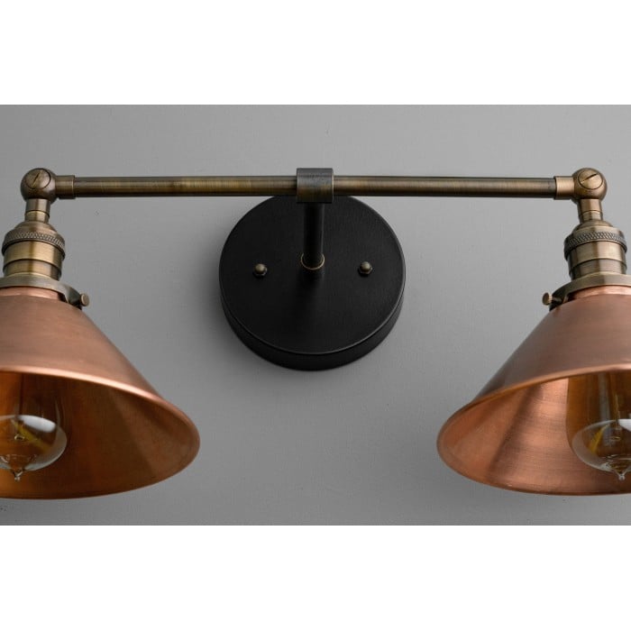 Applique da parete industriale in metallo Conique con doppi paralumi a cono - Finitura in metallo vintage HL1753