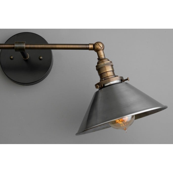 Questa lampada da parete industriale presenta due paralumi in metallo affusolati e robusti bracci di ispirazione meccanica con base circolare. La sua estetica grezza e vintage aggiunge carattere a loft, corridoi e spazi commerciali come bar e ristoranti. La combinazione di metallo robusto e illuminazione calda crea un'atmosfera retrò industriale unica.