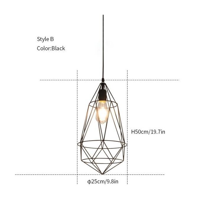 Realizzati a mano con barre d'acciaio quadrate e rifiniti in oro opaco o nero opaco, questi diamanti attirano l'attenzione in una varietà di spazi. La lampada a sospensione Diamond ha due colori tra cui scegliere: nero e oro. E ha quattro modelli che hanno rispettivamente due dimensioni. La forma della linea avvolge la sfera centrale. Le sfere lucide sono extra sorprendenti. Aggiunge una sorprendente sensazione industriale agli interni e può essere utilizzato in soggiorni, cucine, camere da letto, bagni e spazi commerciali. La lampada a sospensione Diamond è un design semplice e moderno. Il design a forma di diamante è la combinazione perfetta tra la ricca sensazione di un diamante e l'atmosfera industriale che si riflette nelle linee d'acciaio.- Si prega di notare che il pagamento non include dazi doganali, tasse locali o altri oneri di importazione. L'ordine non include le lampadine.