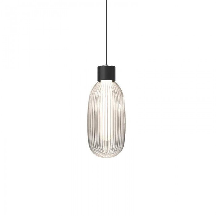 Un volume dalle forme morbide, realizzato in vetro trasparente scanalato, rivela in modo spettacolare un nucleo bianco luminoso al suo interno.