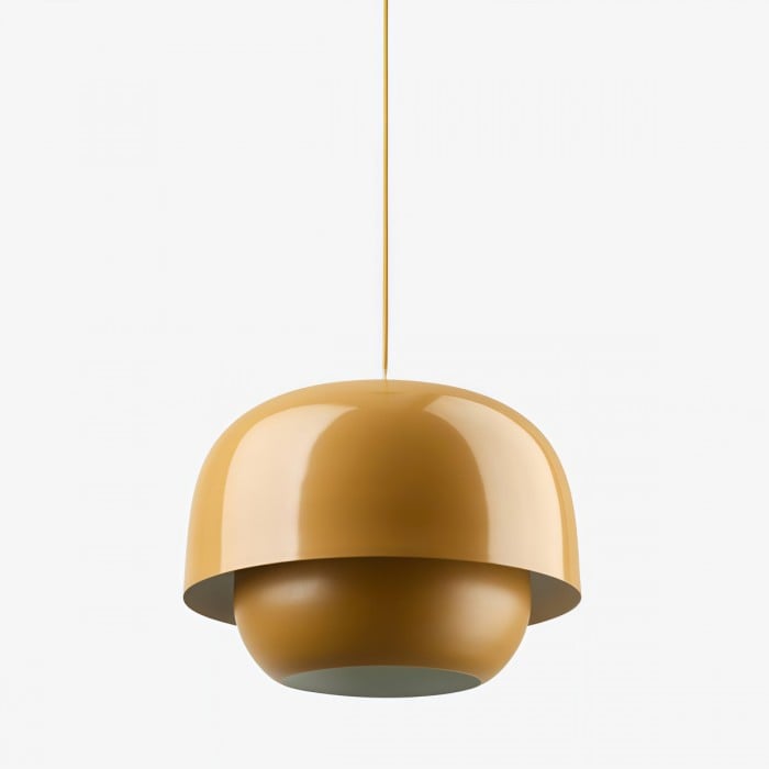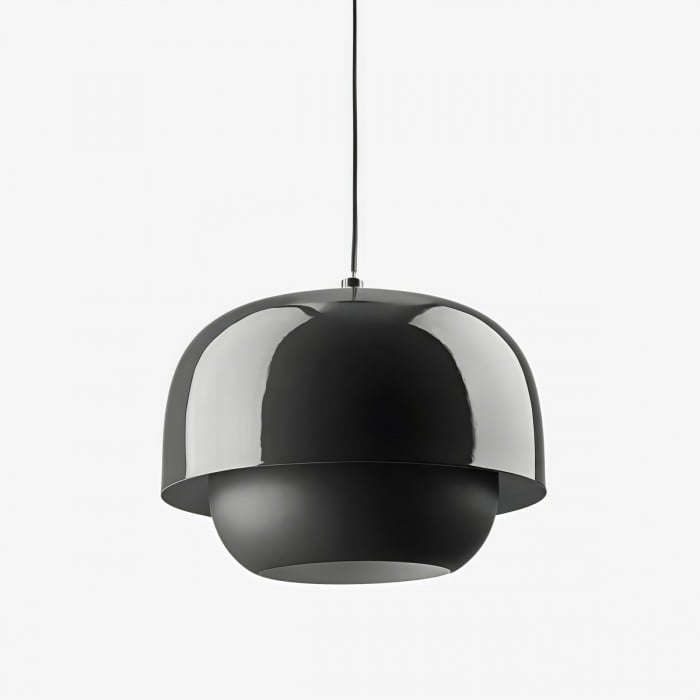 Questa lampada a sospensione in metallo dal design retrò-moderno è una splendida aggiunta a qualsiasi ambiente contemporaneo. L'apparecchio presenta due paralumi incastonati: un esterno in metallo lucido e un interno opaco, che offrono un effetto visivo unico. Perfetta per essere appesa in sala da pranzo, cucina o corridoio, questa lampada a sospensione funge da elegante punto focale.
