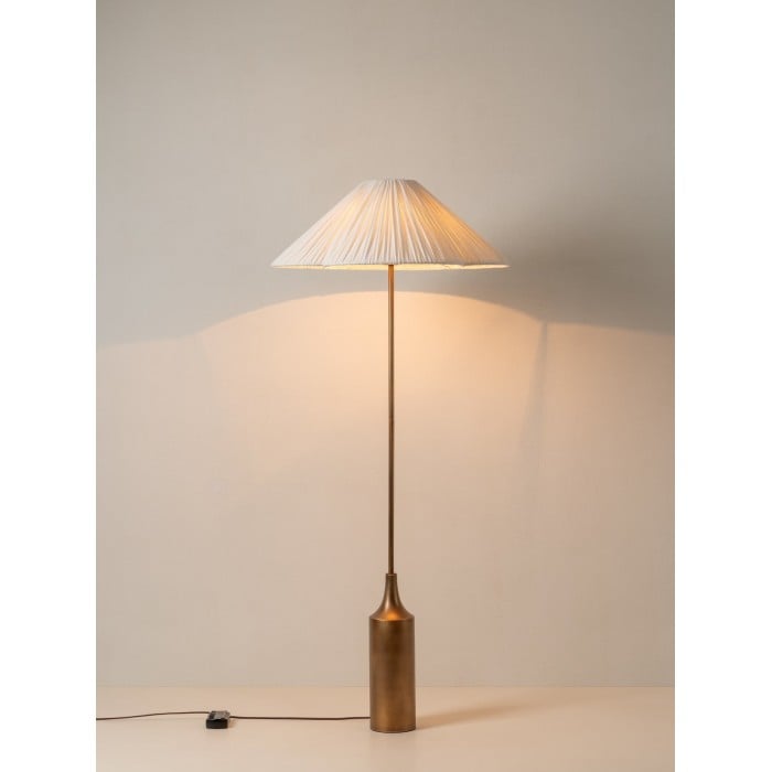 Lindi - lampada da terra smerlata in ottone anticato e lino HL1801