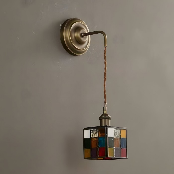 La lampada da parete Mosaic Atelier porta il fascino delle vetrate artistiche realizzate a mano in un interno moderno, abbinando dettagli in ottone vintage a un paralume a mosaico dai colori gioiello che risplende come una miniatura d'opera d'arte. Ogni pannello colorato cattura la luce in modo diverso – alcuni lucidi, altri materici – creando un'atmosfera calda e mutevole, intima ed espressiva.