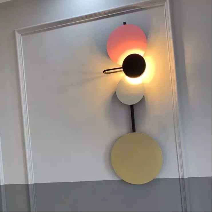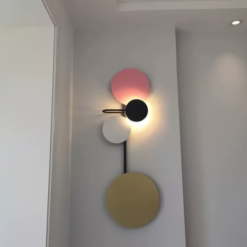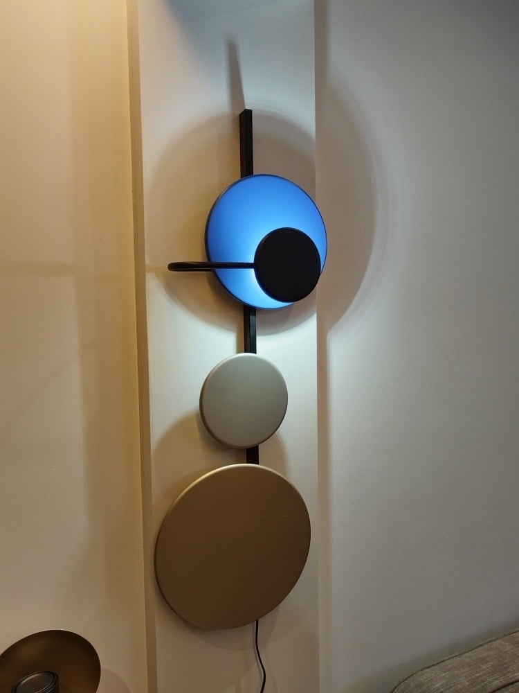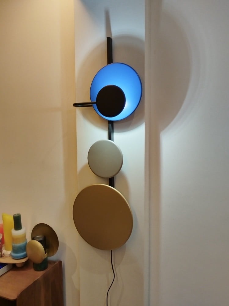La moderna applique da parete circolare colorata PLANET è un design nuovo e accattivante. La lampada da parete LED PLANET è una lampada da parete che riflette la luce. La luce ambientale indiretta sembra morbida e crea luci e ombre sulle pareti a seconda di come sono posizionati i dischi.