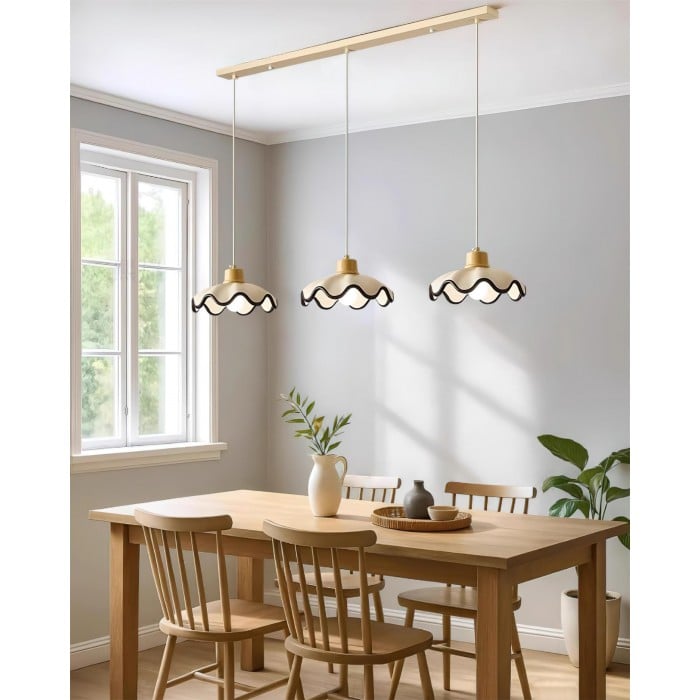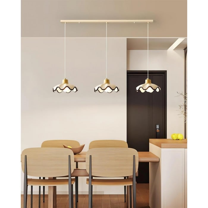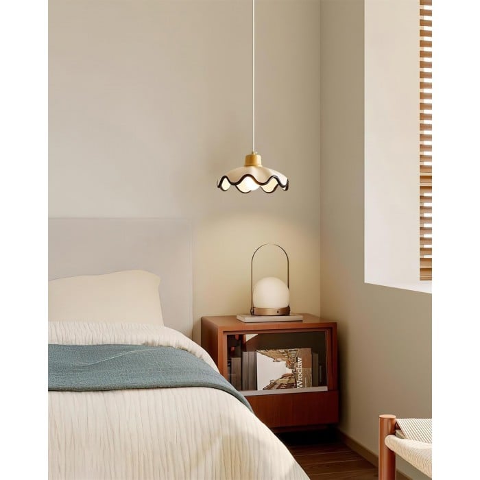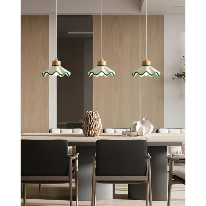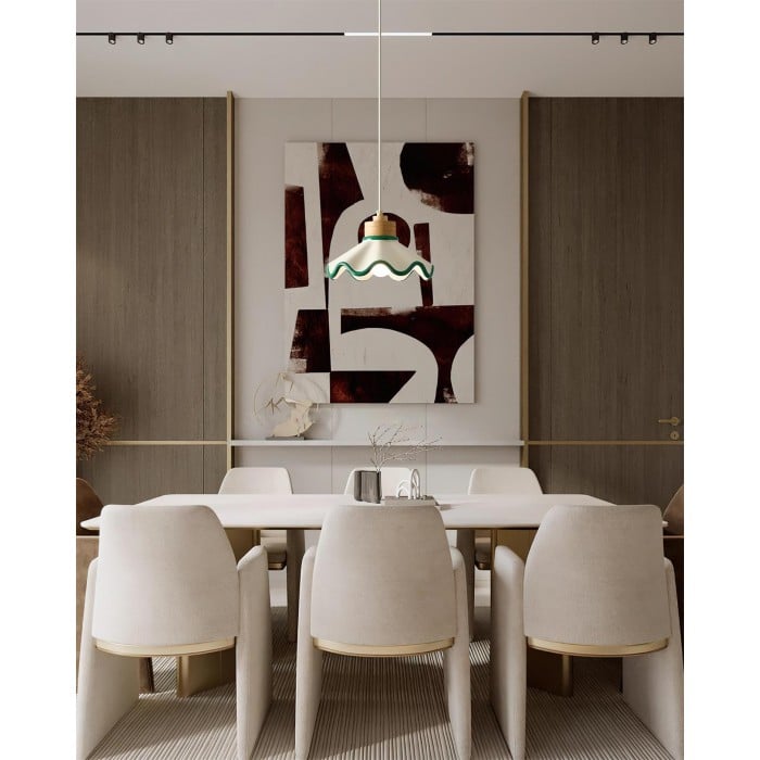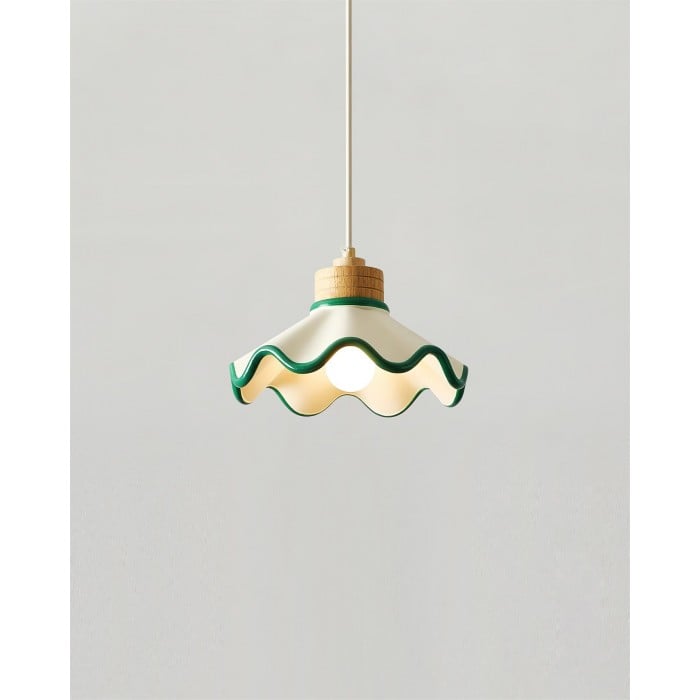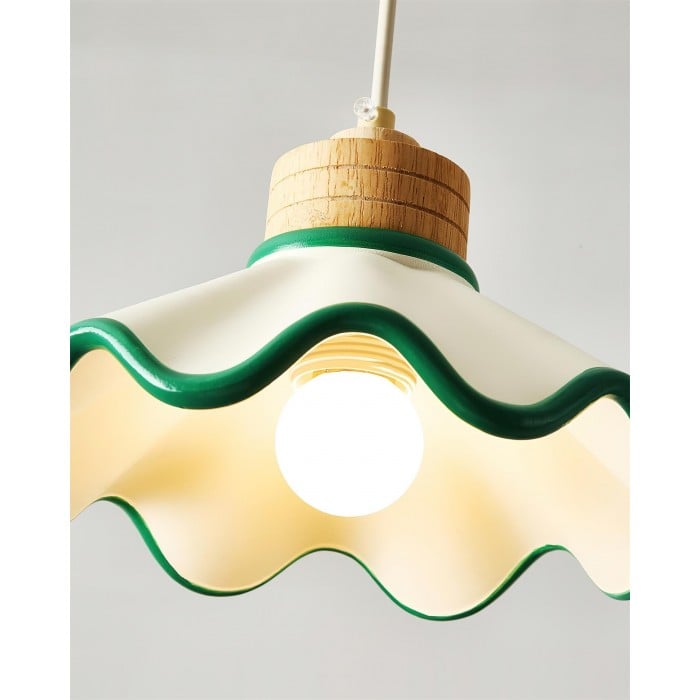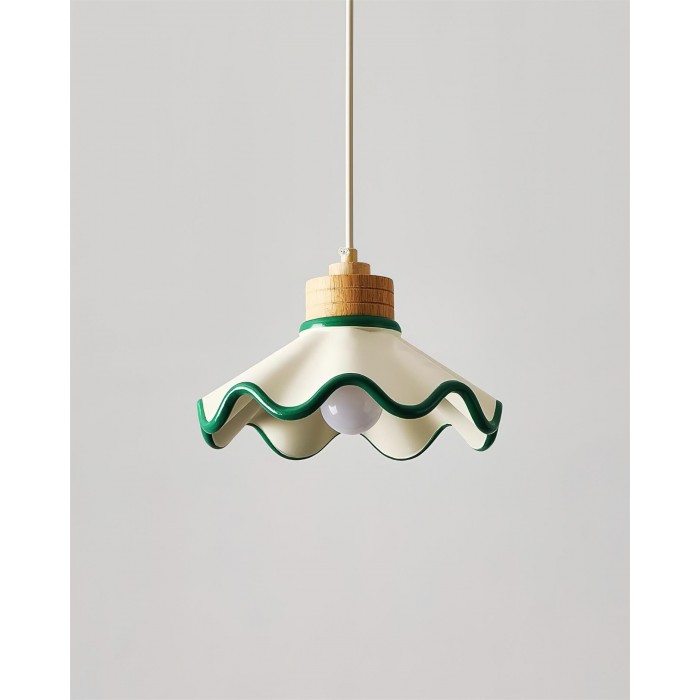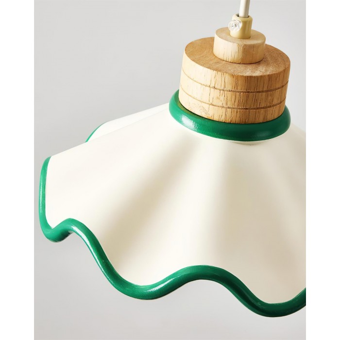 Giocosa e nostalgica, la lampada a sospensione Tilda dona un tocco di allegria e stravaganza a qualsiasi interno. Il suo bordo smerlato, impreziosito da un'audace finitura a contrasto, richiama il fascino delle lampade da caffè retrò, mentre la delicata finitura opaca e la parte superiore con inserti in legno aggiungono calore e matericità. Che sia in tonalità verdi, marroni o naturali, la silhouette ondulata di Tilda proietta una luce morbida e invitante, perfetta per angoli colazione, camerette dei bambini o angoli accoglienti che necessitano di un tocco di design.