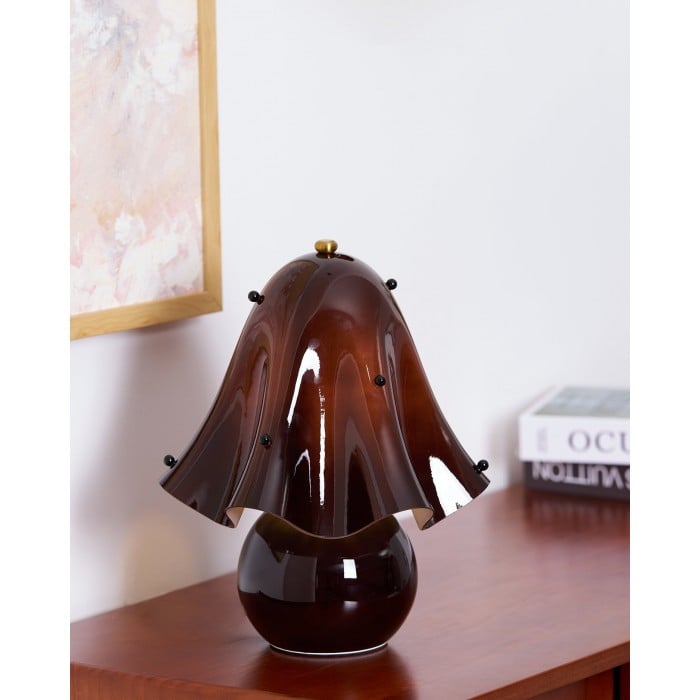 Fai una dichiarazione audace ma raffinata con la lampada da tavolo decorativa. Questo pezzo di illuminazione scultoreo si trasforma in un oggetto d'arte minimalista per la tua consolle, scrivania o scaffale. La fusione perfetta tra la base arrotondata e il paralume fluido crea una silhouette moderna e accattivante. Scegli le linee pulite per un look iconico o seleziona il dettaglio con perline per una texture aggiuntiva. Vera definisce senza sforzo uno spazio con il suo fascino unico e contemporaneo.