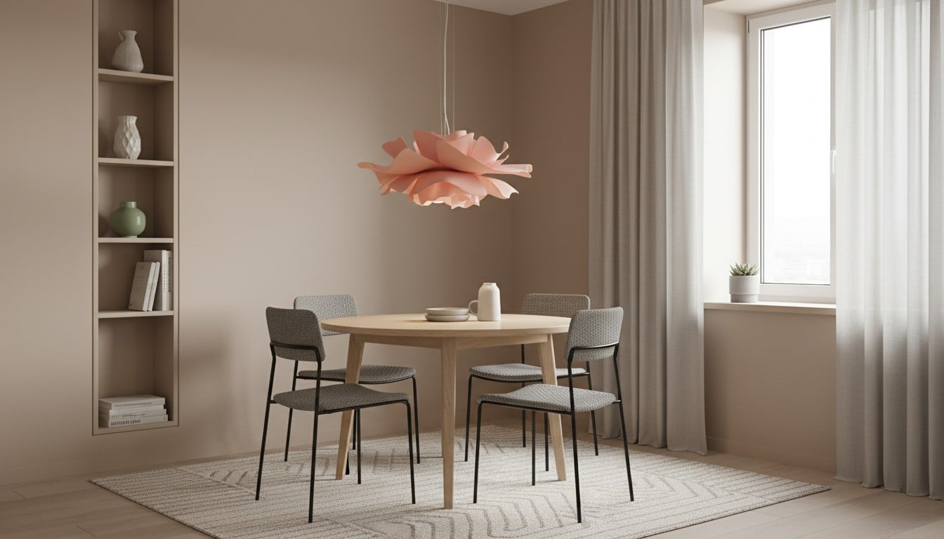 Zamiast pełnić funkcję czysto funkcjonalnej oprawy sufitowej, kwiatowa lampa wisząca często pełni rolę cichego punktu centralnego. Dzięki niej pomieszczenie wydaje się przemyślane, ale nie przesadzone. Ta równowaga jest szczególnie atrakcyjna w sypialniach, jadalniach, kącikach do czytania i mniejszych mieszkaniach, gdzie każdy przedmiot musi spełniać więcej niż jedno zadanie.