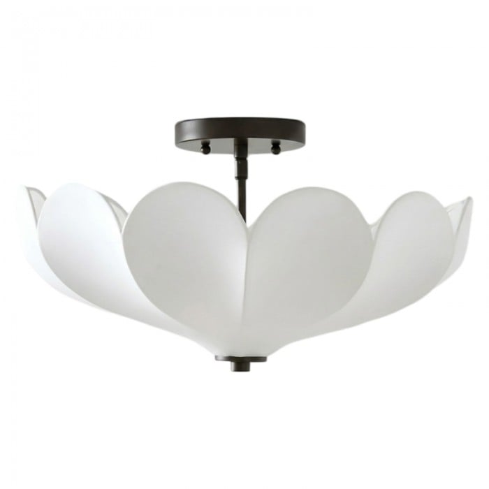 Lampa sufitowa Crelune Nordic, półpłaska, posiada rzeźbiony klosz z tkaniny o delikatnym, kwiatowym kształcie. Zaprojektowana z myślą o nowoczesnych wnętrzach, zapewnia delikatne oświetlenie nastrojowe, dodając jednocześnie rzeźbiarskiej elegancji. Idealna do sypialni, salonów i korytarzy.