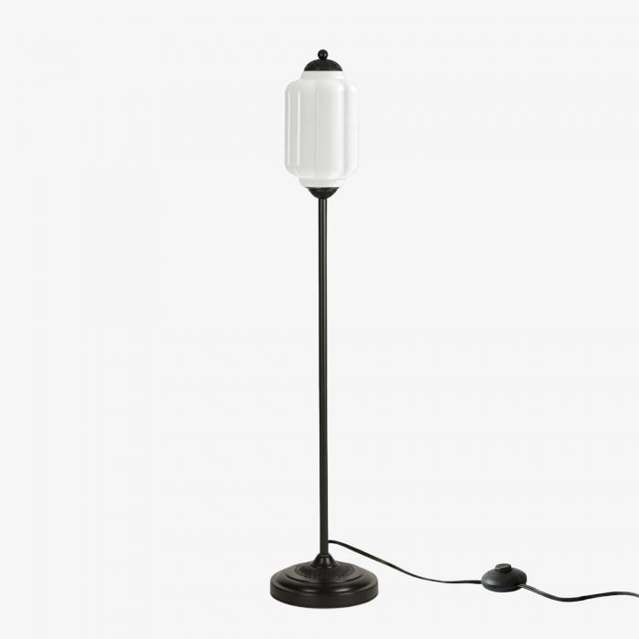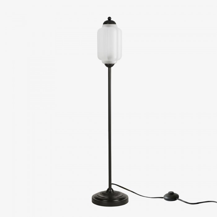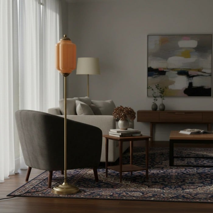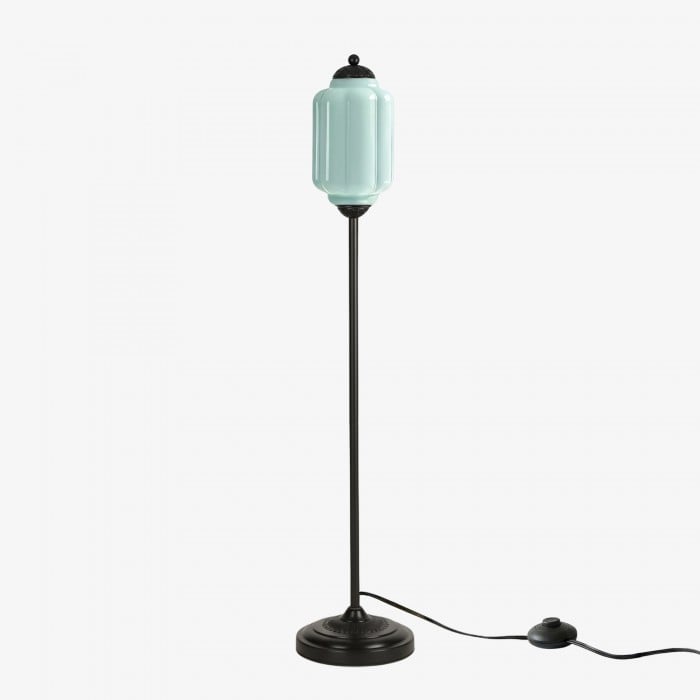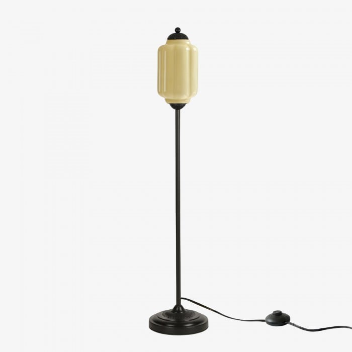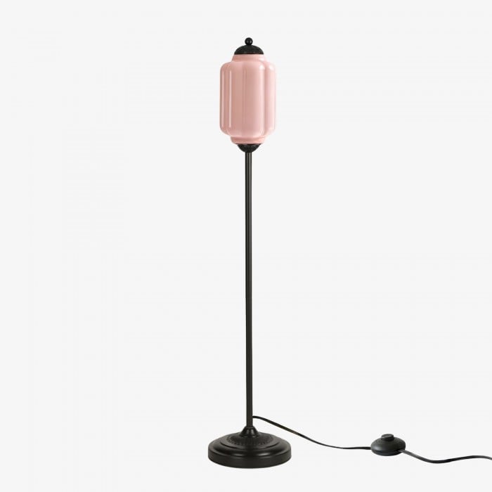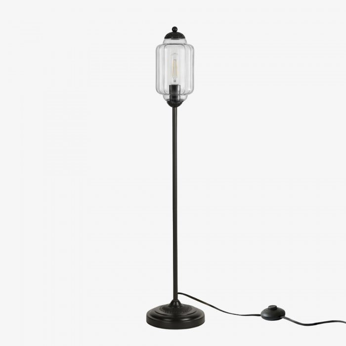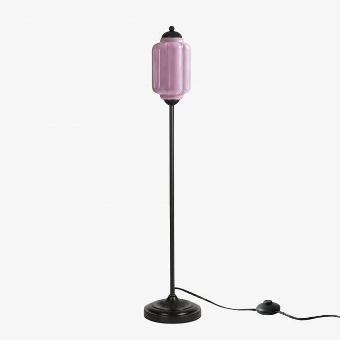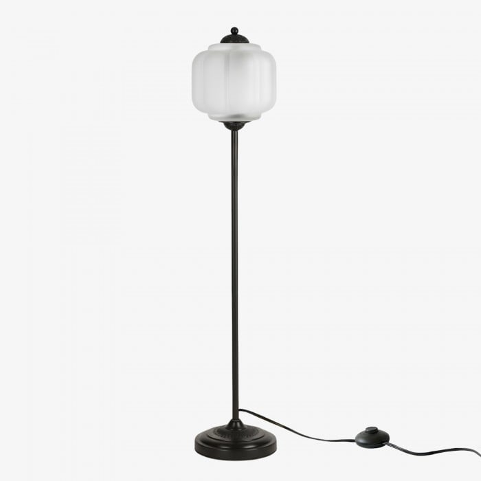 Lampa podłogowa Eloise łączy w sobie organiczny kunszt z ponadczasowym stylem retro. Wykonana z ręcznie dmuchanego, teksturowanego szkła i metalowego trzonu, ta inspirowana dynią lampa rzuca miękkie, rozproszone światło, które podkreśla piękno salonów, gabinetów i sypialni. Jej klosz ze szkła w stylu vintage tworzy płynne refleksy, a ciepłe mosiężne akcenty dodają odrobinę klasycznej elegancji.