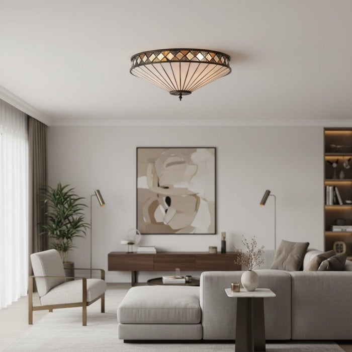 Lampa sufitowa Fargo Tiffany z kryształowymi akcentami artystycznymi do salonu HL1824