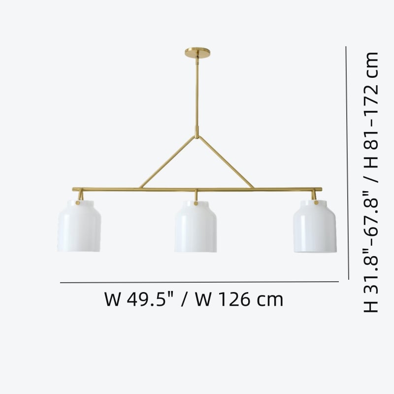 - 3 głowy: W 49.5" x D 7.5" x H 31.75"–67.75" / W 126 cm x D 19 cm x H 81–172 cm