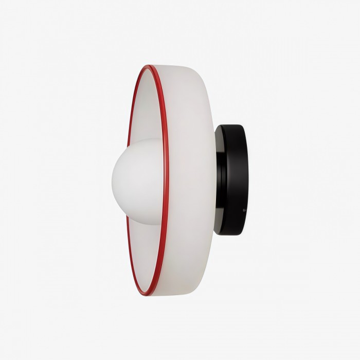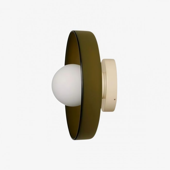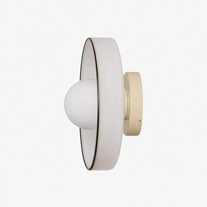 - Ta lampa ścienna sufitowa łączy metalową obudowę ze szklanym kloszem i jest dostępna w trzech różnych dwukolorowych wykończeniach.