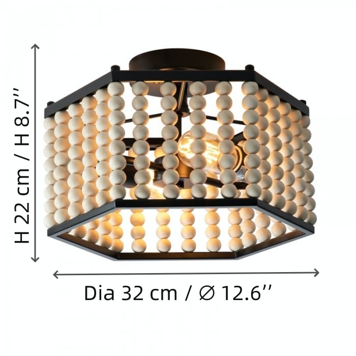 Przedstawiamy naszą uroczą lampę sufitową z drewnianymi koralikami w kształcie sześciokąta, urocze połączenie rustykalnego uroku i nowoczesnej elegancji. Wykonana z połączenia metalu i drewna, ta lampa sufitowa z koralikami z drewna rozprasza ciepło i charakter, idealna do podkreślenia atmosfery w kuchni, jadalni, salonie, wejściu lub korytarzu.