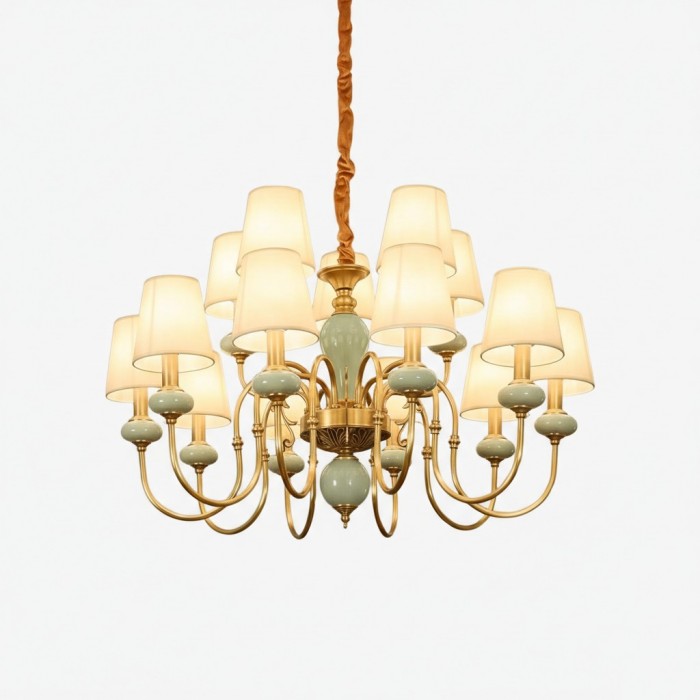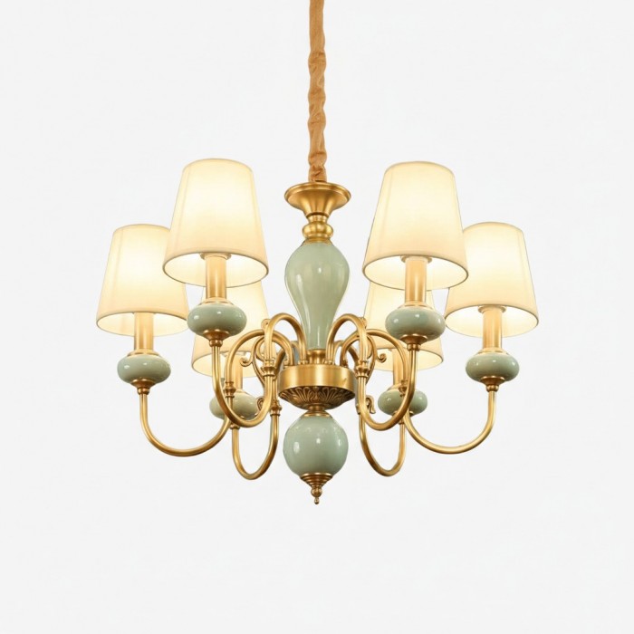 Altoris Serie Kroonluchter met Stoffen Lampenkappen - Messing Keramische Kroonluchter voor Woonkamer HL2479