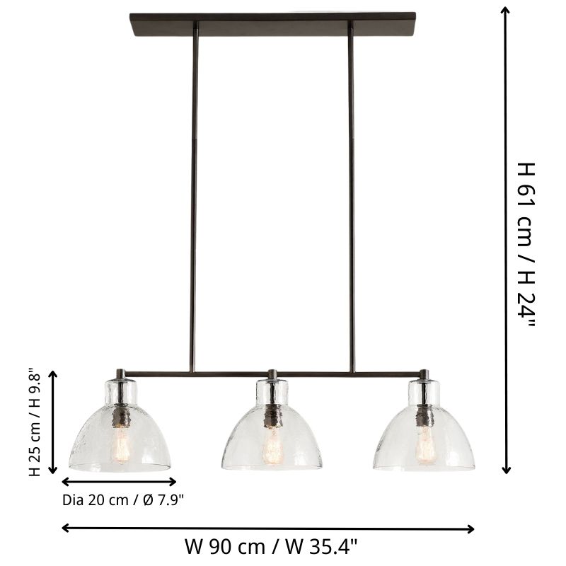 De Glavira lineaire kroonluchter van gerecycled glas combineert een stalen constructie met getrommelde messing- of bronsafwerkingen en heeft een mondgeblazen kap van helder glas. Perfect als kroonluchter in de eetkamer, als hanglamp voor een kookeiland of als middelpunt in de woonkamer. Deze lineaire kroonluchter brengt zowel duurzaamheid als eigentijdse charme in uw huis.