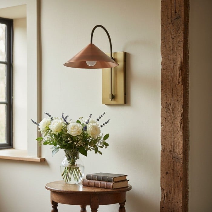 Conique Metalen Minimalistische Wandlamp - Sculpturale Messing Booglamp voor Moderne Interieurs HL1762