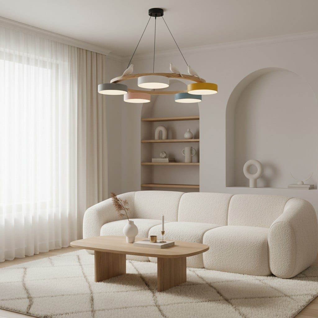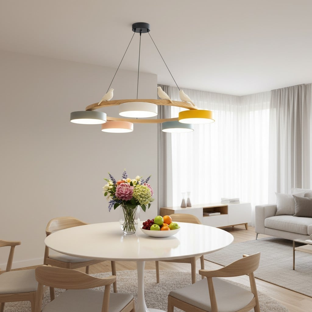 Creatieve Houten Vogel Kleurrijke Ronde Kroonluchter HL926