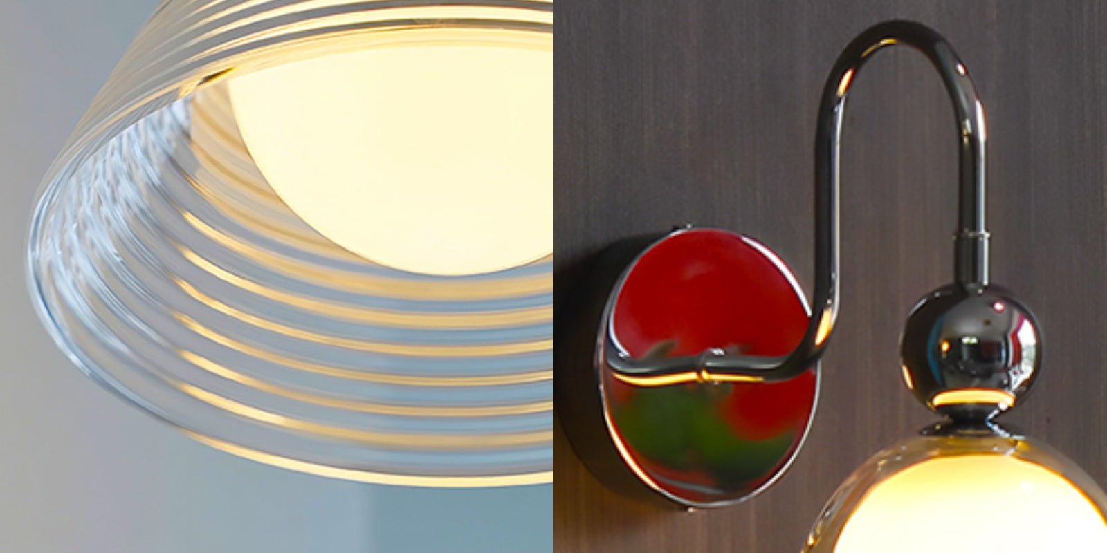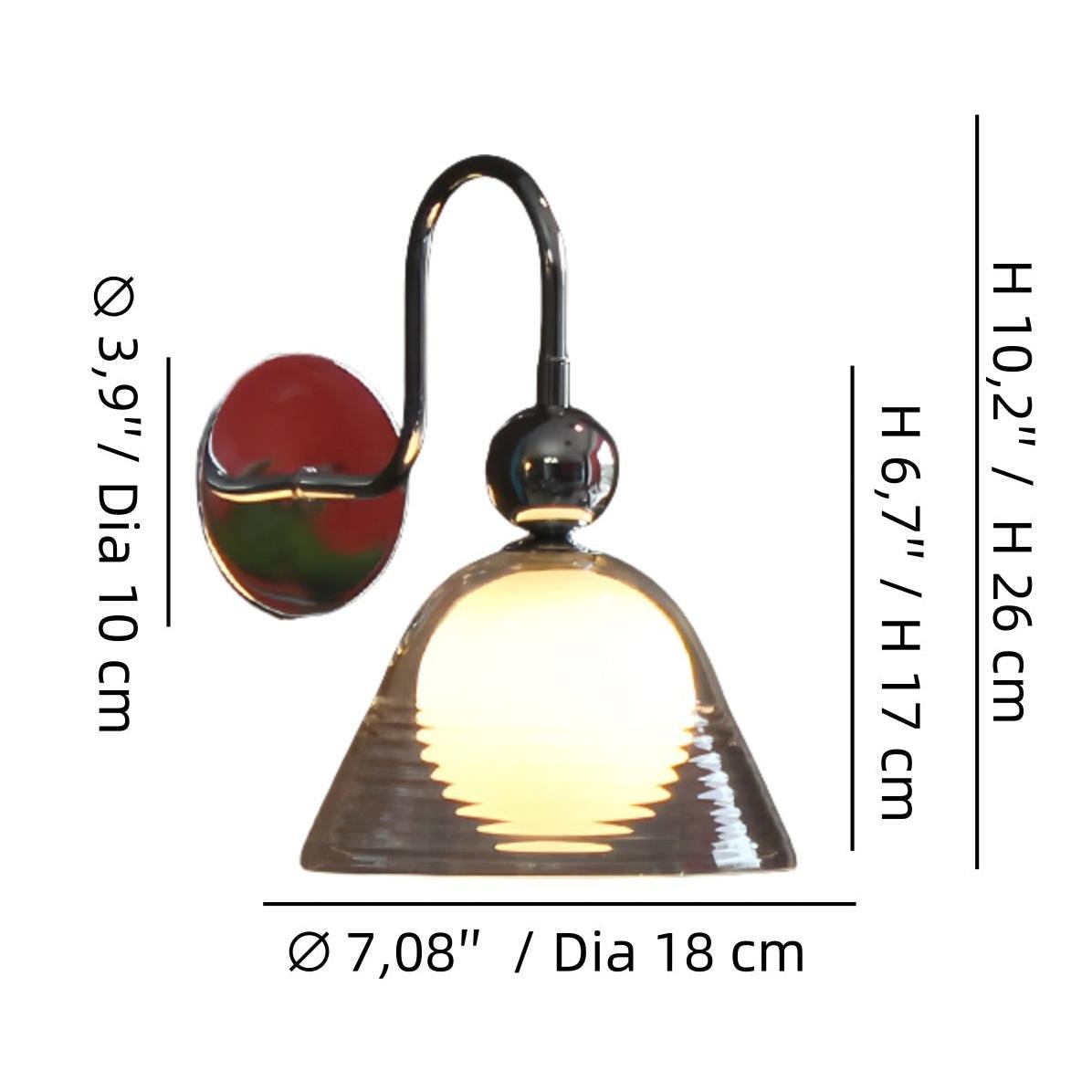 Deze Afterglow Sunset wandlamp, gemaakt van geribbeld glas en chroom, belichaamt de tijdloze invloed van Bauhaus-design. De sculpturale vorm en warme verlichting creëren een artistieke sfeer, ideaal voor moderne lofts, leeshoekjes of galerie-achtige interieurs.