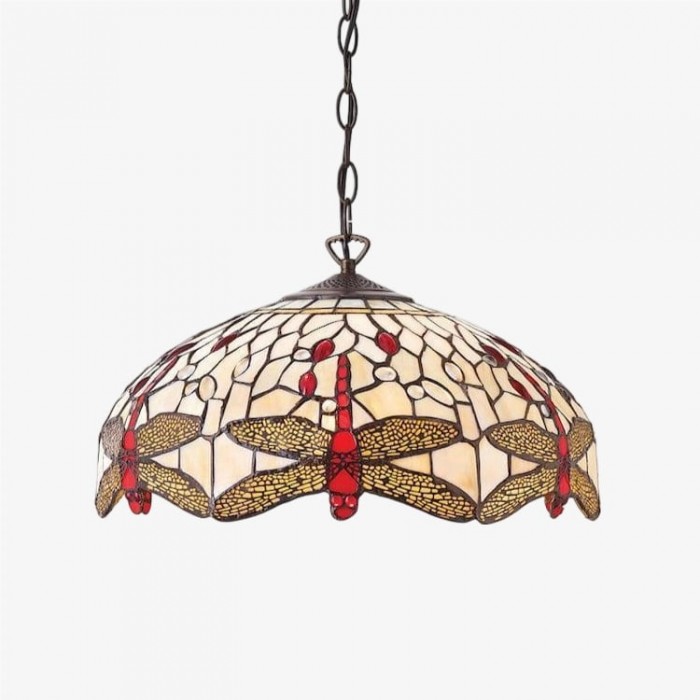 - Authentiek vakmanschap: Handgesneden glas-in-lood creëert een levendige blauwe tint met gedetailleerde libellenmotieven.