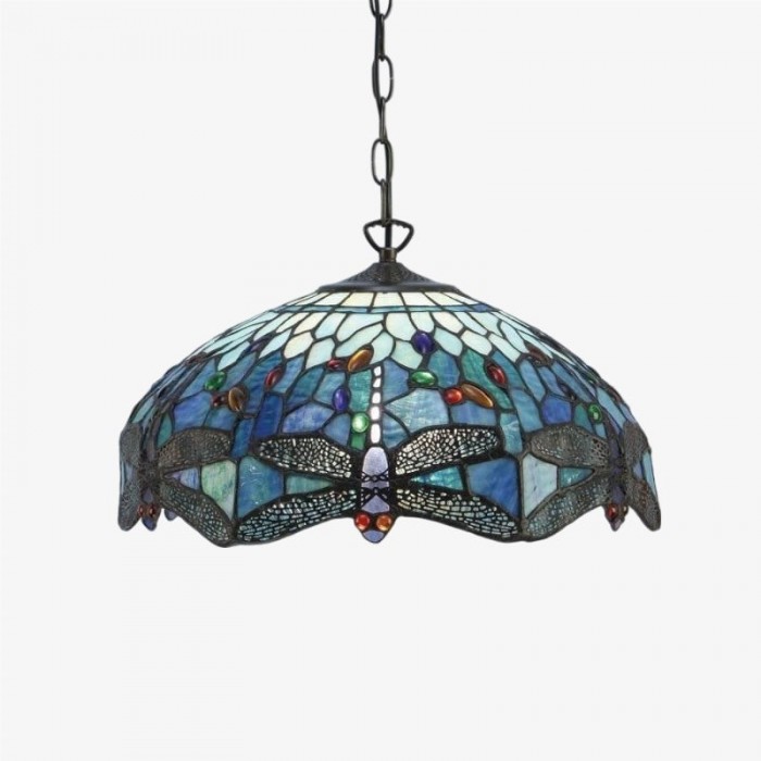 TF Dragonfly Blue Tiffany hanglamp - Art Nouveau hanglamp met glas-in-lood voor de woonkamer HL2045