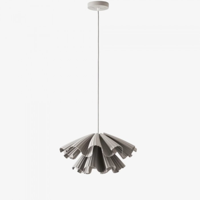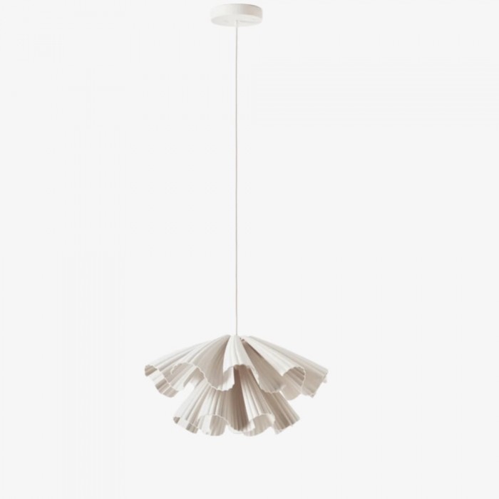 De Elora hanglamp heeft een elegant, geplooid silhouet en verspreidt een zacht, sfeervol licht. Lichtgewicht en duurzaam, is Elora geschikt voor woonkamers, eetkamers of milieubewuste werkplekken en combineert perfect modern design met duurzaamheid.