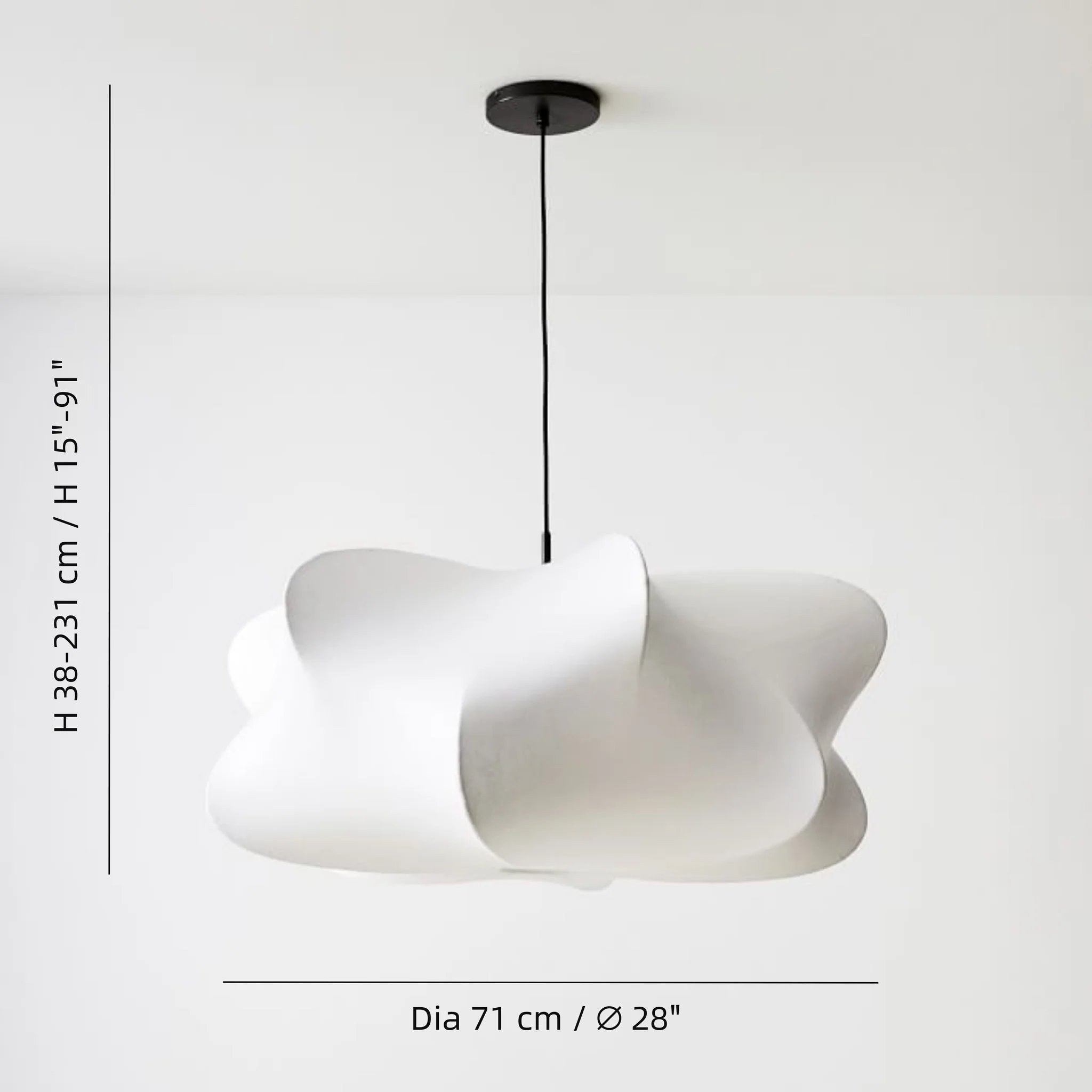Diameter: 71 cm x H 38-231 cm / ∅ 28" x H 15″-91″