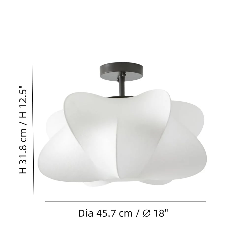 Plafondlamp: Diameter 45,7 cm x H 31,8 cm / ∅ 18″ x H 12,5″