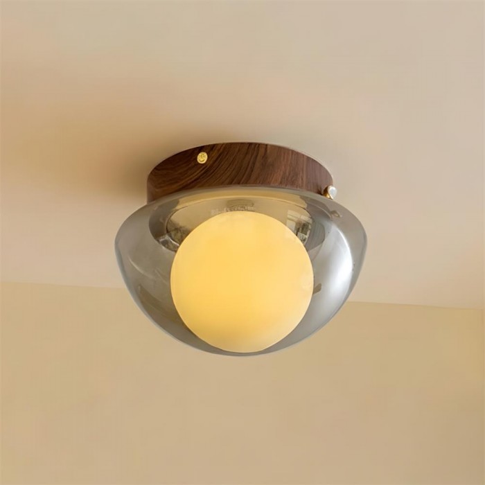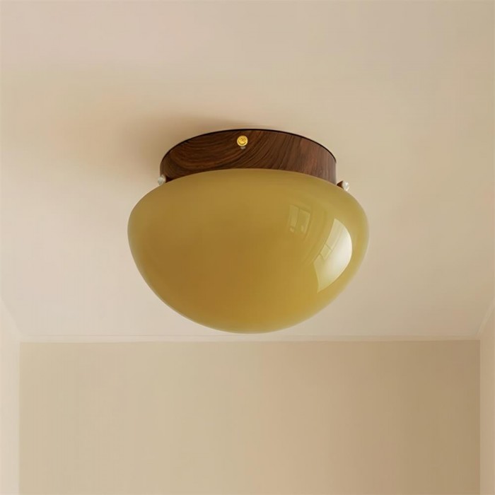 De Honeyed Dome plafondlamp geeft een warme, sculpturale uitstraling aan het plafond, gekenmerkt door de zacht afgeronde amberkleurige glazen kap die, wanneer verlicht, gloeit als vloeibare honing. Gecombineerd met een verfijnd accent met watertransferprint in houtnerfmotief aan de bovenkant, balanceert het ontwerp retro charme met moderne ingetogenheid, waardoor een gezellige maar toch stijlvolle sfeer ontstaat. Subtiel van vorm maar rijk aan karakter, voegt deze plafondlamp een vleugje warmte en persoonlijkheid toe zonder de ruimte te overheersen.