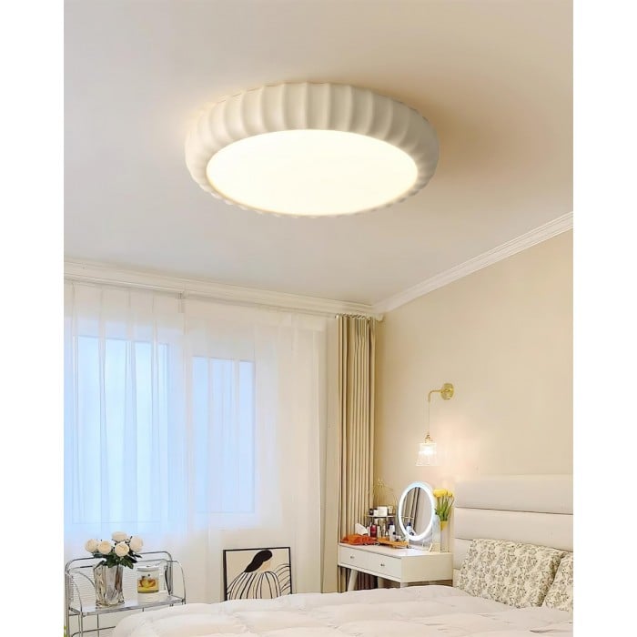 Eenvoudige crèmekleurige ronde plafondlamp met golven HL572