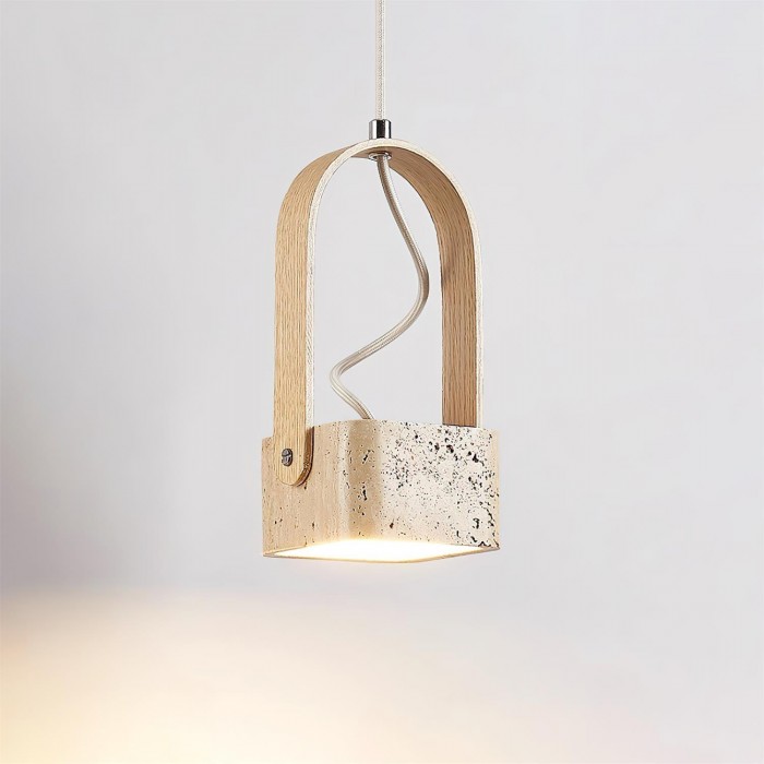 De Geometric Yellow Travertine Pendant Lamp presenteert een harmonieuze mix van natuurlijke elegantie en hedendaags design. Het heeft een opvallende geometrische betonnen basis, een bewijs van minimalistische stijl, en de schoonheid van industriële materialen. Een strakke, metalen steun verweeft zich met het hout, voegt een vleugje verfijning toe en zorgt voor stabiliteit. Het unieke ontwerp van deze lamp werpt een gerichte lichtbundel naar beneden, waardoor het een uitstekende keuze is voor accentverlichting of voor het verlichten van een specifiek gebied, zoals een leeshoek of aanrecht.
