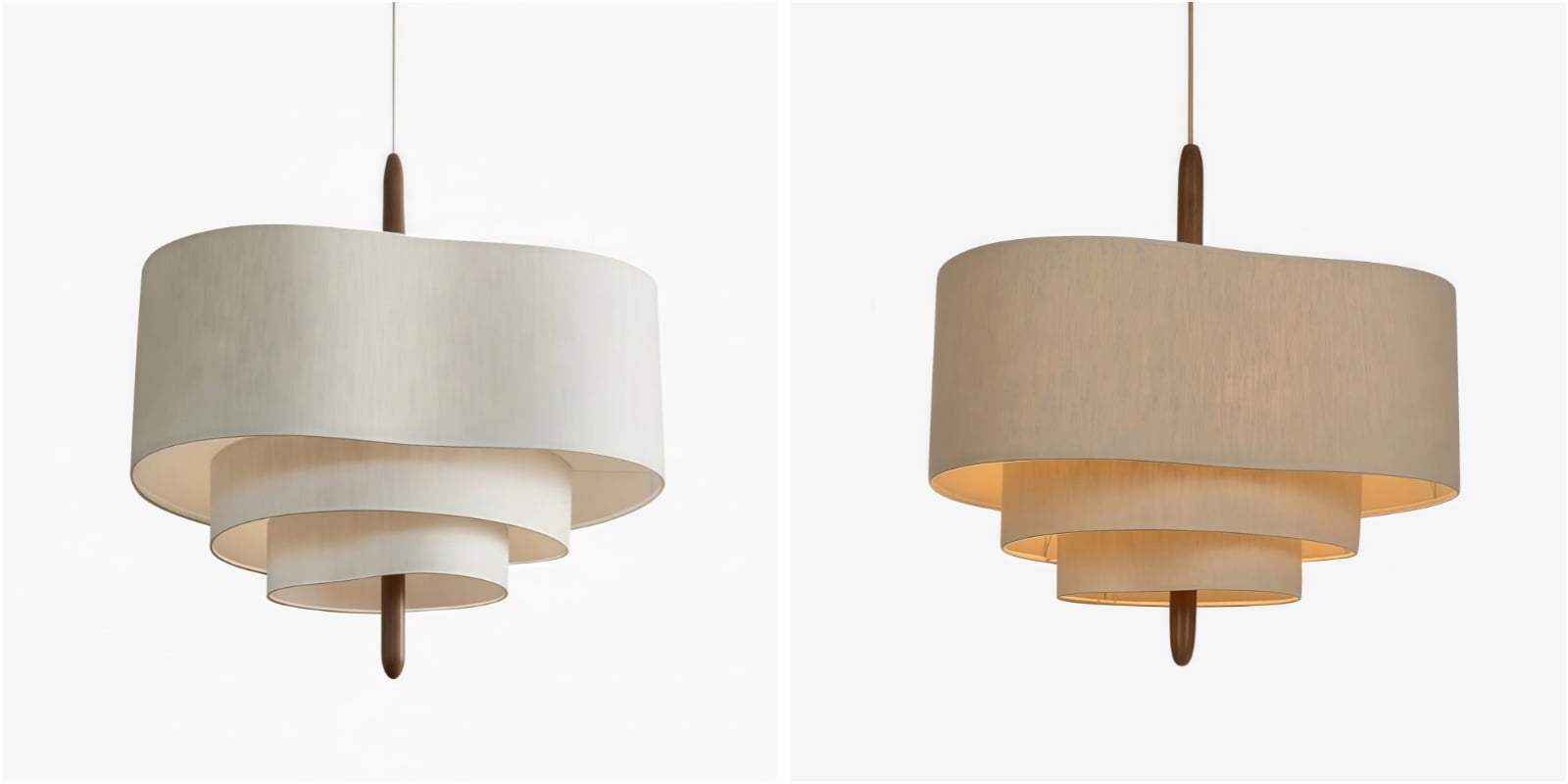 Een stijlvolle stoffen hanglamp met een zachte kap die een warme, diffuse gloed verspreidt. Het gelaagde textielontwerp geeft de lamp diepte en een verfijnde, moderne uitstraling, terwijl de lamp toch licht en luchtig blijft. Ideaal boven eettafels, keukeneilanden, slaapkamers, woonkamers of hallen.